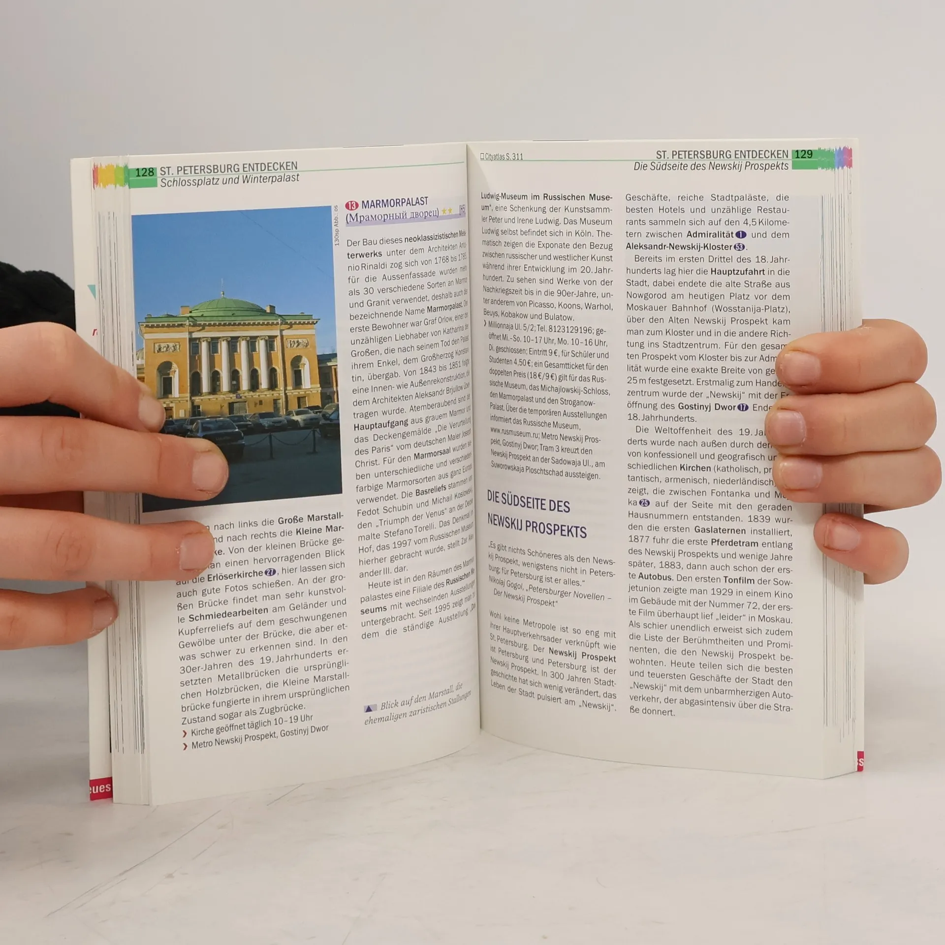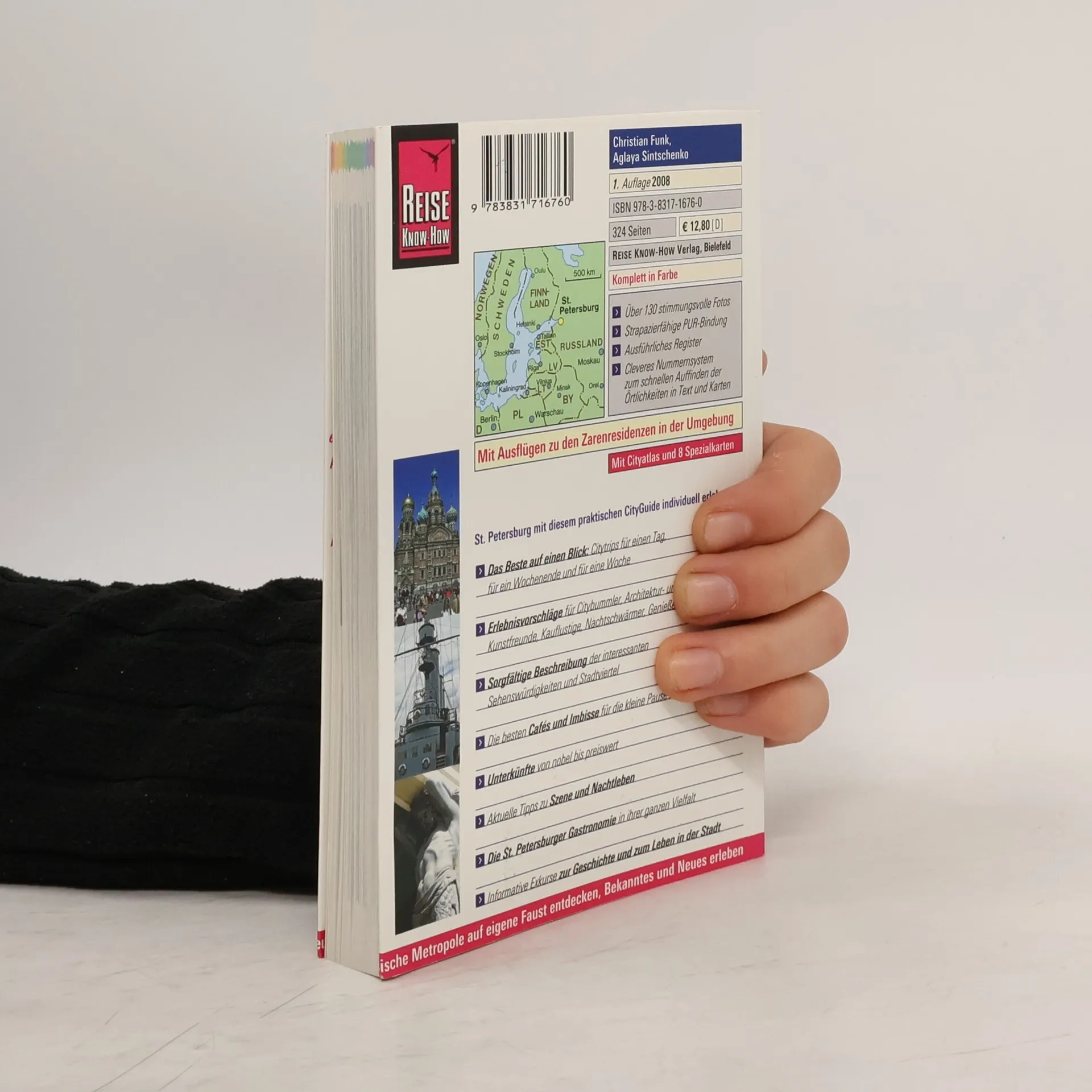 Der praktische Städteführer bietet eine Fülle an Informationen zu Geschichte, Kultur, Gesellschaft sowie Beschreibungen der Sehenswürdigkeiten für unterschiedlich lange Aufenthalte. Der Reiseführer richtet sich aufgrund der Vielzahl an reisepraktischen Informationen zu Unterkünften unterschiedlicher Preisklassen, Restaurants, zum Nachtleben und zur Freizeitgestaltung sowie zur Reiseplanung in erster Linie an Individualreisende, aber auch für Pauschalreisende sind die Stadtrundgänge mit Erläuterungen zu Sehenswürdigleiten und Stadtvierteln äußerst lesenswert. Ein Kapitel für Ausflüge in die Umgebung, ein kleiner Sprachführer, Literaturtipps und das Register vervollständigen den mit Karten und zahlreichen Farbfotos ergänzten Städteführer. Vor D. Evodocuk "St. Petersburg" (Trescher; BA 5/07) und E. NeumannAdrian "St. Petersburg" (ADAC; BA 10/07), einzusetzen wie E. Gerberding: "St. Petersburg" (DuMont, BA 10/07) und I. Howard "St. Petersburg (NationalGeographic, BA 10/07). (2)