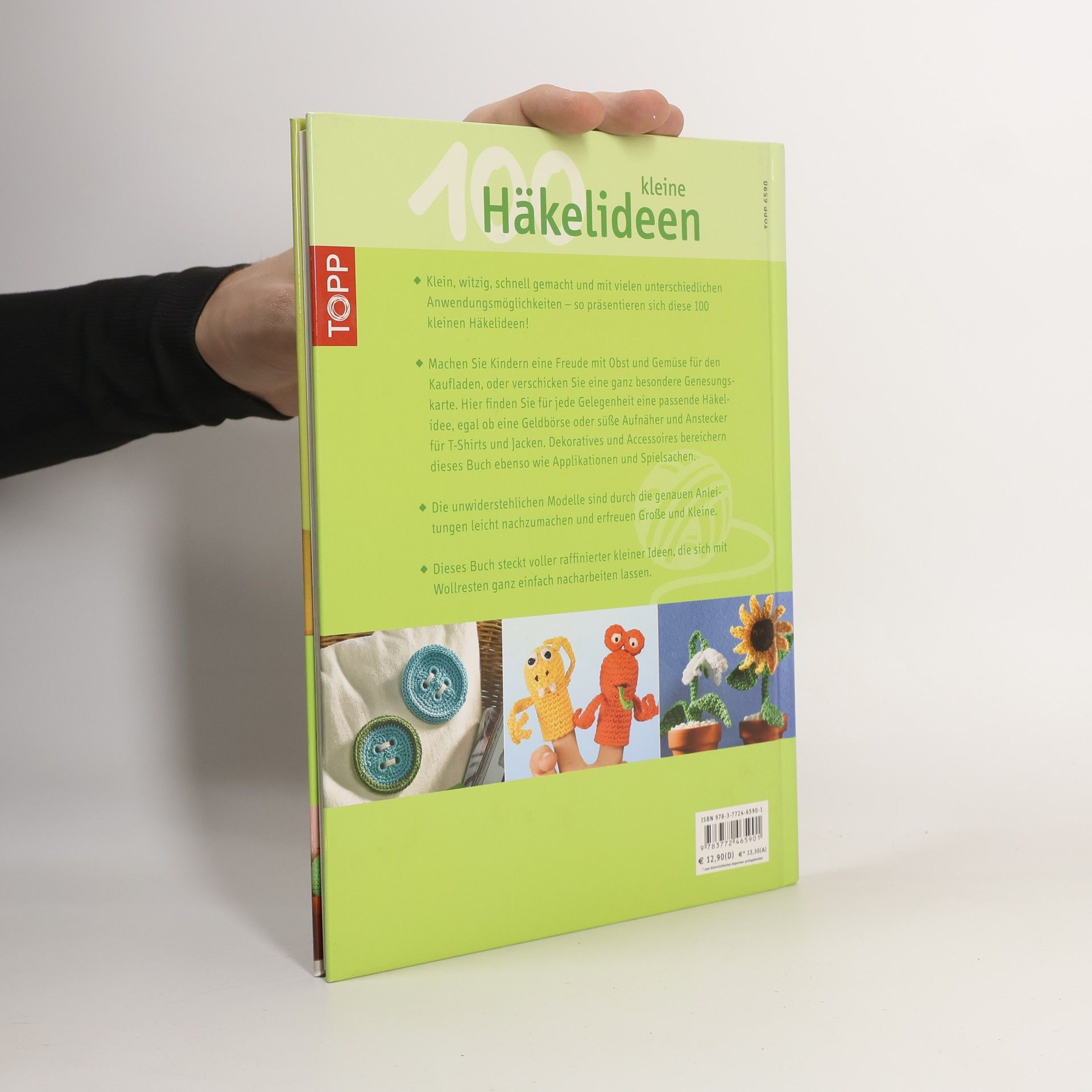 100 kleine Häkelideen. Mit vielen Anwendungen. Klein, witzig und schnell gemacht! Für jede Gelegenheit eine passende Häkelidee: Dekoratives und Accessoires ebenso wie Applikationen, Spielsachen u.v.m. Viele raffinierte kleine Ideen für Wollreste. 120 Seiten, 20 x 26 cm, Hardcover.