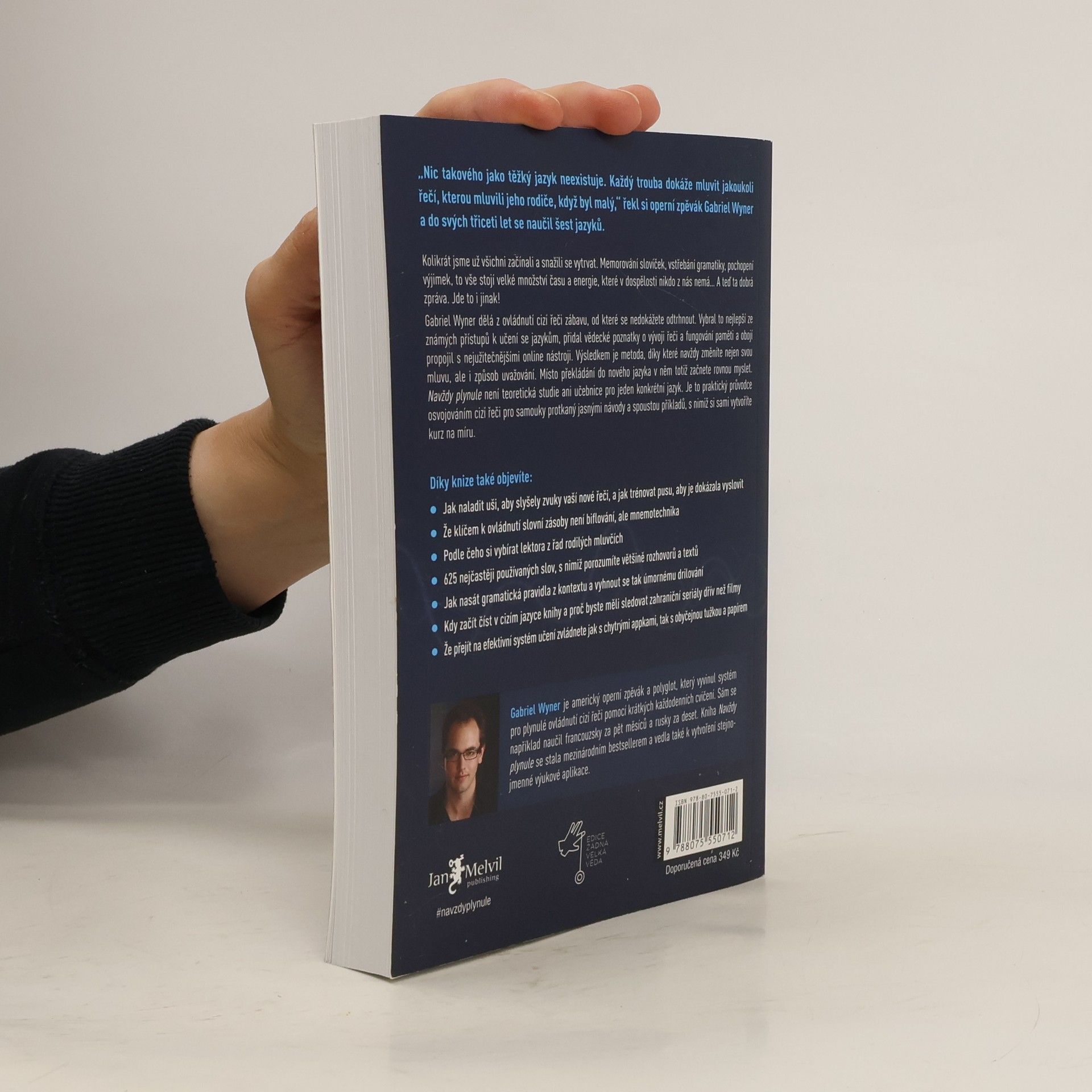 Vzdali jste učení se cizích jazyků? Nemáte čas a ještě k tomu vás úmorná gramatická cvičení nudí? A když už do hlavy něco dostanete, stejně to zase brzy zapomenete? Navždy plynule vaši skepsi vyléčí! Ukáže vám, jak se cizí řeč naučit efektivně, rychle, zábavně a natrvalo. Záchrana, že? Operní pěvec a polyglot Gabriel Wyner není pouhým teoretikem – již ve třiceti letech mluvil plynně šesti jazyky, které se zvládl naučit sám. A každý z nich navíc ovládl v řádu měsíců. Bohaté zkušenosti pak přetavil do nové učební metody pro samouky, která spočívá v krátkých denních trénincích, propojuje to nejužitečnější ze známých lingvistických přístupů s poznatky o fungování mozku a nezapomíná ani na pomoc zdarma dostupných online nástrojů. Navždy plynule vás naučí, jak naladit uši na nové zvuky, jak donutit ústa ke všem novým akrobaciím a jak si kousek po kousku uložit do dlouhodobé paměti vše: od jednoduchých slovíček až po složitá gramatická pravidla. A buďte bez obav, nuda přitom rozhodně nehrozí. Naopak, zábava je klíčem k úspěchu. Takže tentokrát si hru s cizími jazyky užijete a konečně se naučíte vyhrávat! Enfin! Endlich! ?????! Finally! Finalmente! Végre! Endelig! Nareszcie! În cele din urmă! ...