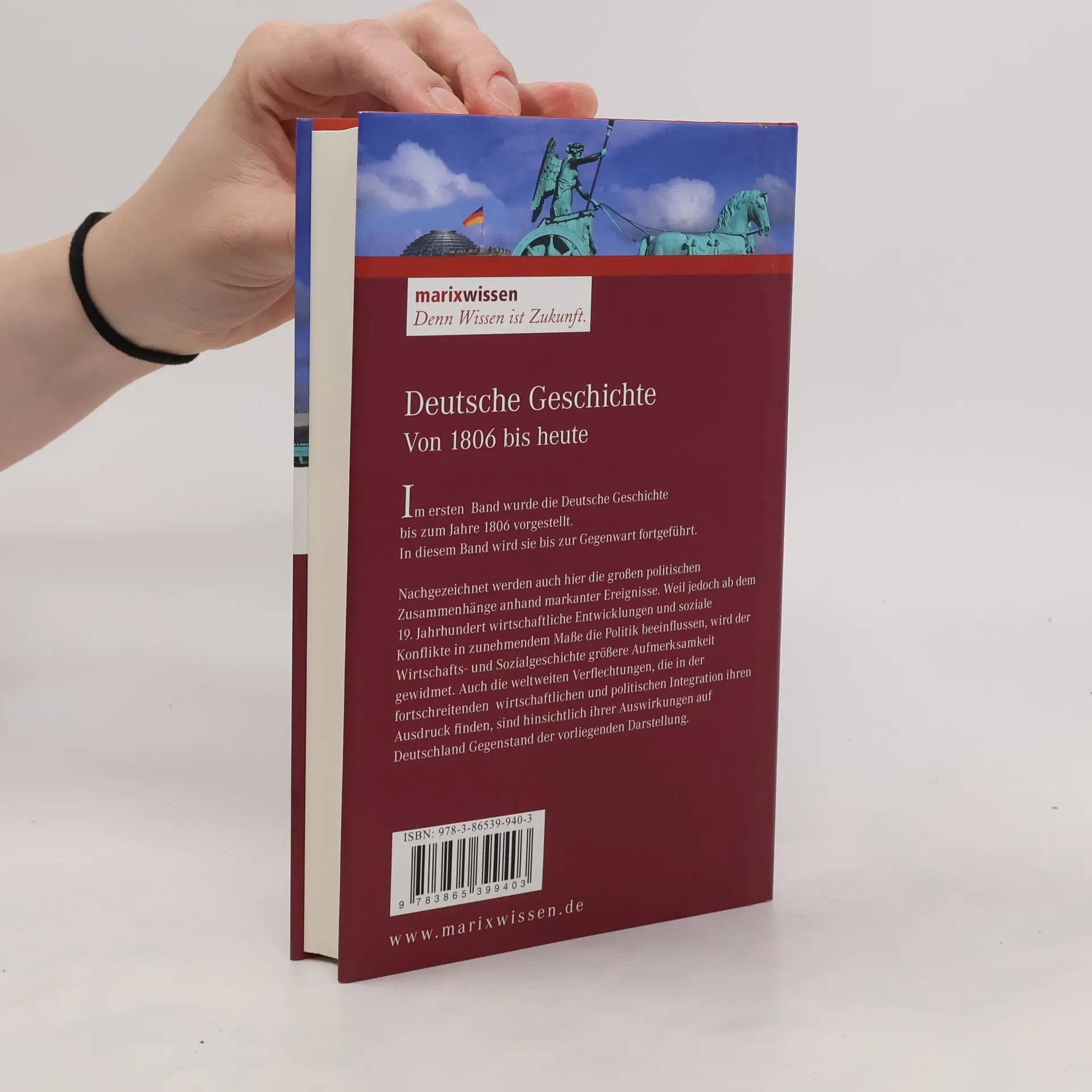 Schilderung der deutschen Geschichte von 1806 bis heute anhand markanter Ereignisse.Im ersten Band wurde die Deutsche Geschichte bis zum Jahre 1806 vorgestellt. In diesem Band wird sie bis zur Gegenwart fortgeführt. Nachgezeichnet werden auch hier die großen politischen Zusammenhänge anhand markanter Ereignisse. Weil jedoch ab dem 19. Jahrhundert wirtschaftliche Entwicklungen und soziale Konflikte in zunehmendem Maße die Politik beeinflussen, wird der Wirtschafts- und Sozialgeschichte größere Aufmerksamkeit gewidmet. Auch die weltweiten Verflechtungen, die in der fortschreitenden wirtschaftlichen und politischen Integration ihren Ausdruck finden, sind hinsichtlich ihrer Auswirkungen auf Deutschland Gegenstand der vorliegenden Darstellung.
