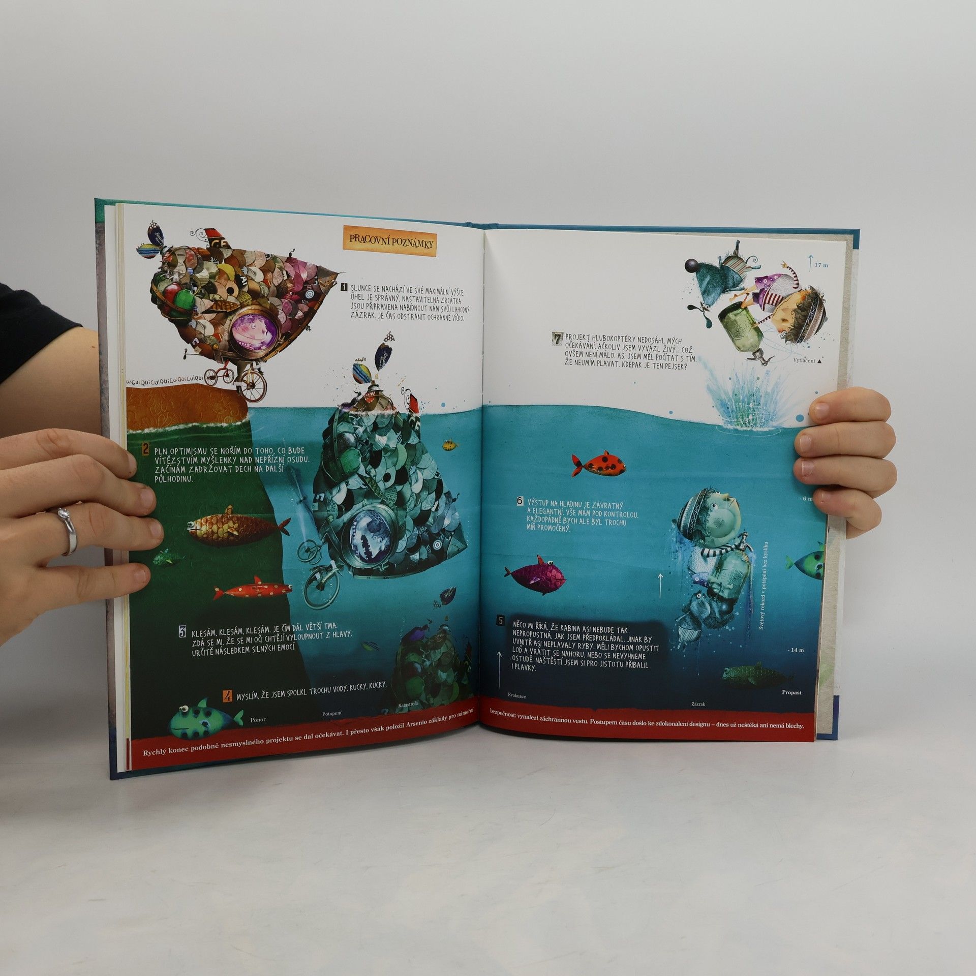 Arsenio odmalička snil o tom, že se stane vynálezcem. To proto, že rád vymýšlel a rád konstruoval. To proto, že vždy odvážně hleděl vpřed, jak už tomu u takových hrdinů bývá. To proto, že dokázal trávit hodiny u svého stolku, jen s tužkou a kusem papíru, hloubal nad tím, co na světě schází a které věci ještě neexistují. Arsenio si své sny kreslil a v 18. století přemítal o budoucnosti. Motoneta, varnoskop a trávožrout jsou jen příklady experimentů, které geniální Manuel J. Arsenio podrobně popsal a vysvětlil ve svém červeném sešitě. A že byl odvážný, nespokojil se pouze s jejich popisem – on je také sestrojil, vyzkoušel a prokázal, že tyto pokusy mají stejně velký dopad na jeho kosti, jako na světové dějiny.