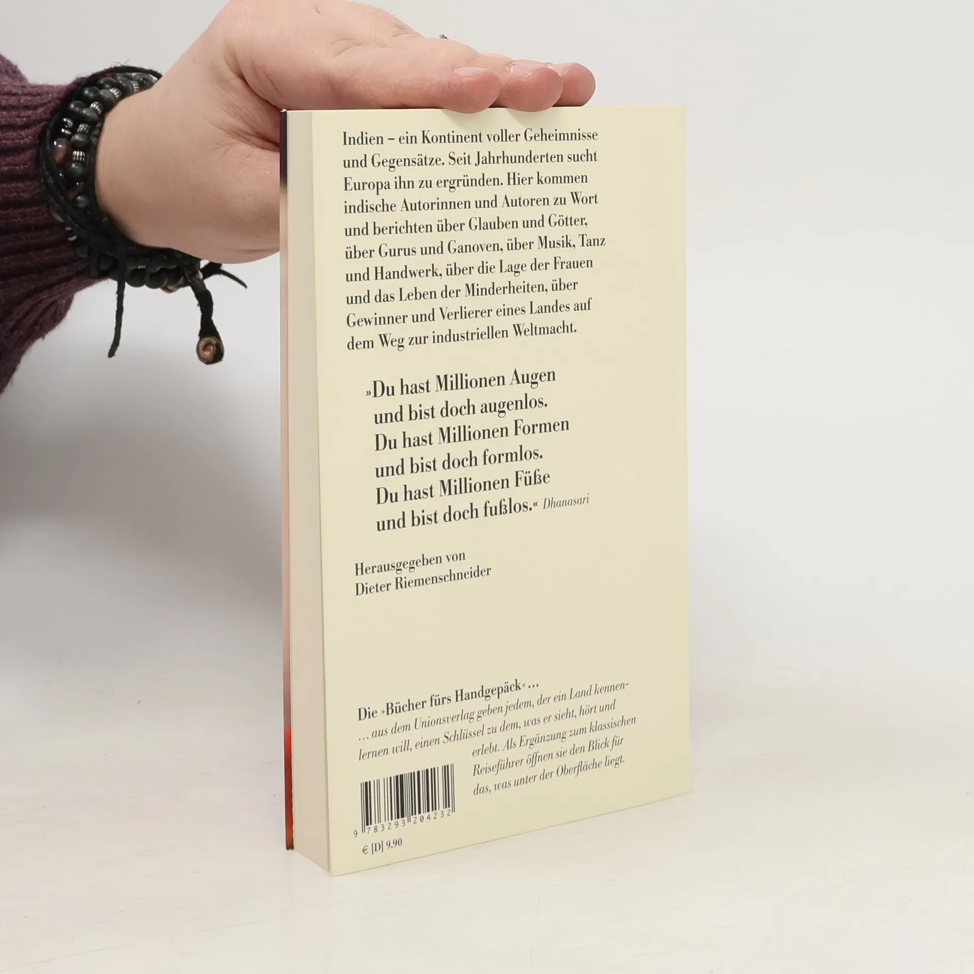 Indien – ein Kontinent voller Geheimnisse und Gegensätze. Seit Jahrhunderten sucht Europa ihn zu ergründen. Hier kommen indische Autoren zu Wort und berichten über Glauben und Götter, über Räuber und Heilige, über Musik, Tanz und Handwerk, über Neureiche, Industriemagnaten und Kastenlose, über die Lage der Frauen, über die Umwälzungen der IT-Industrie und die Konflikte ihres Landes auf dem Weg zur industriellen Weltmacht.