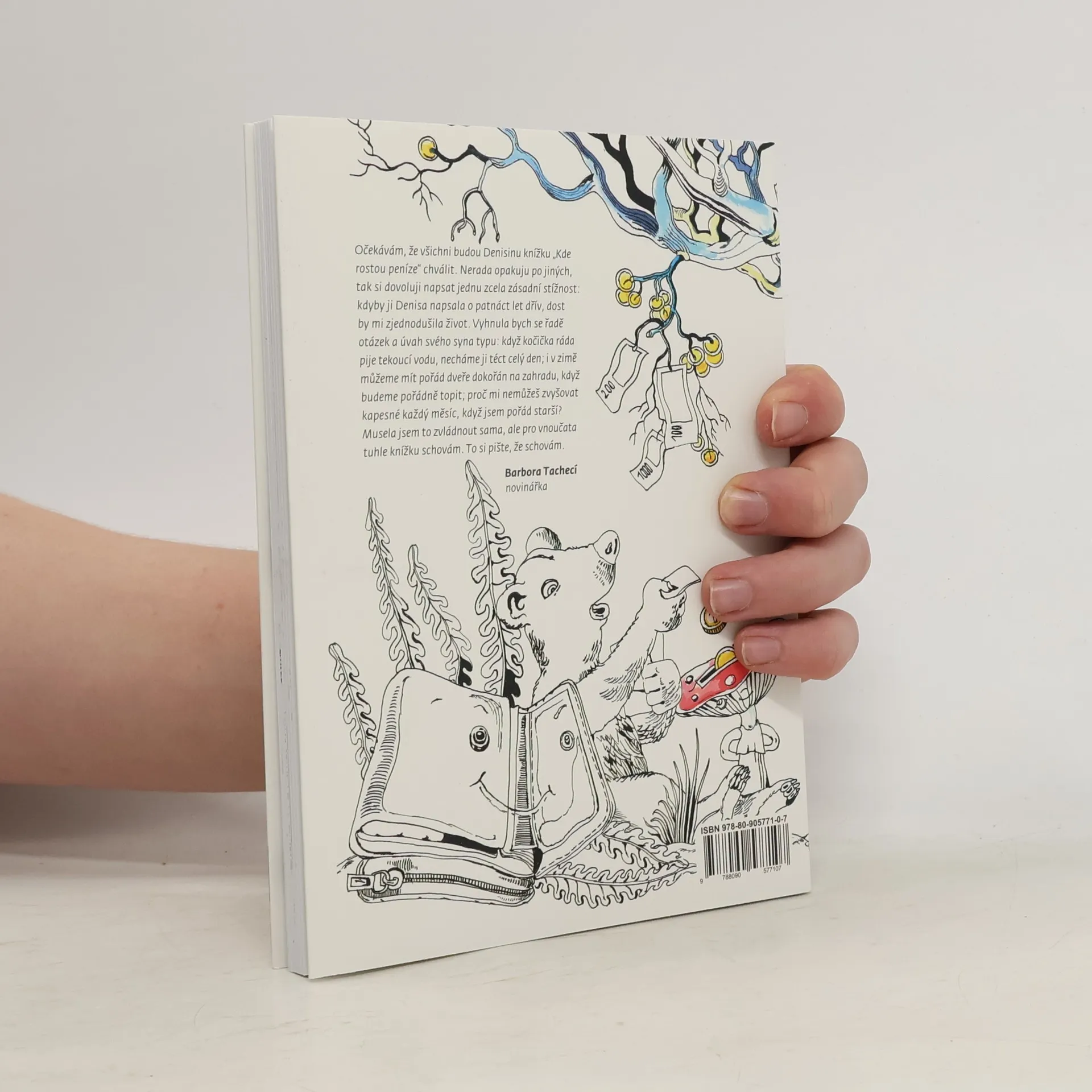 Každý rodič se dřív nebo později dostane pod palbu otázek: „Kde se ,líhnou‘ v bankomatu peníze?“, „Proč mi nechce koupit všechno, co se mi líbí?“, „Co je to výplata?“, „Co je to nájem, dluh, úrok a jaký rozdíl je mezi půjčkou a dárkem?“ Trn z paty může rodičům vytrhnout právě tato kniha Denisy Proškové. Až si ji děti mladšího školního věku (společně s rodiči) přečtou, měly by chápat souvislost mezi prací a získáváním peněz a orientovat se v základních finančních termínech. Malé čtenáře světem financí provází druhák Adam a jeho mladší sestra Adélka, jejich rodiče a formou pohádek také zvířecí rodiny Veverkových a Medvídkových. Knížka, doprovázena třiceti ilustracemi, přináší víc než rámcovou orientaci ve světě peněz. Děti se z ní dozví i to, proč je hloupé někomu závidět a že v životě existuje spousta důležitých věcí, které se za žádné peníze koupit nedají. A protože knížky pro tuto věkovou kategorii by vždy měly mít i něco navíc, mohou si děti některé ilustrace samy vybarvit.
