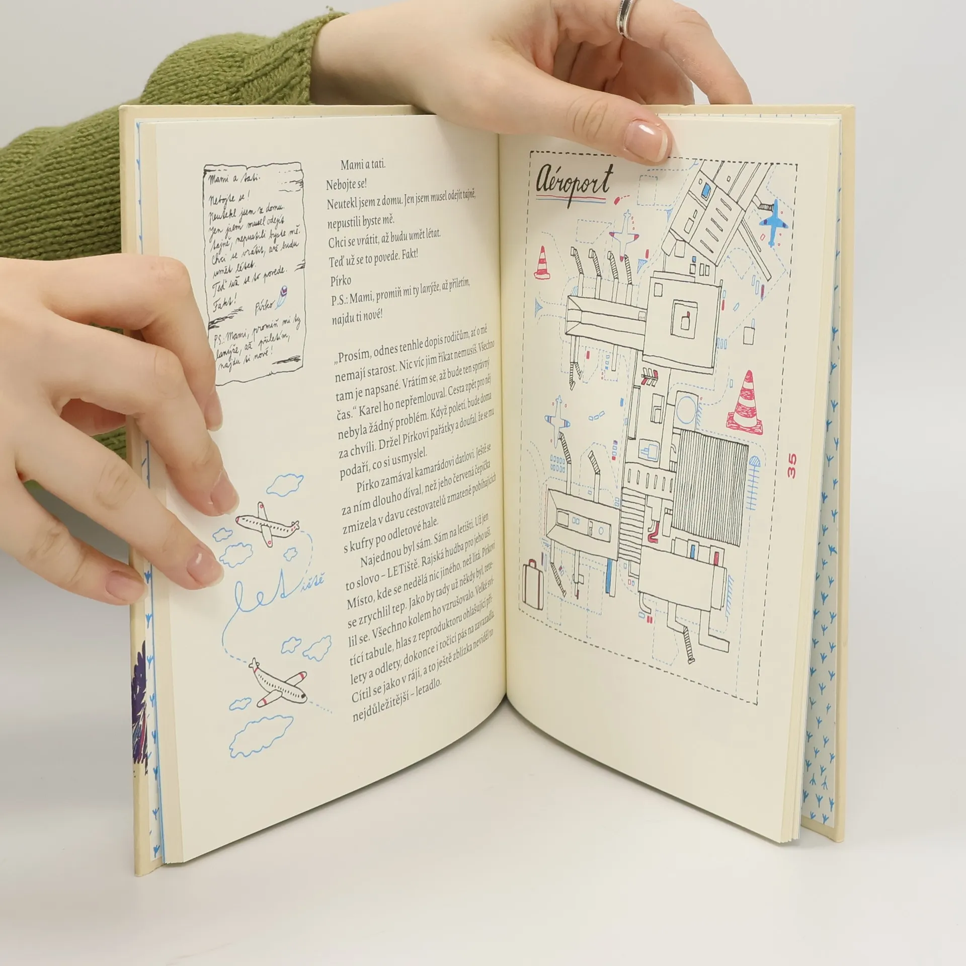 Jaké to je, když neumíte létat? Pro člověka asi nic neobvyklého, ale pro ptáka, navíc z rodiny slavného poštovního holuba, je to PROBLÉM. Kniha Holub Kolumb (Meander 2013) představila dobrodružný příběh zamilovaného holuba putujícího světem kamkoli ve stopách půvabné slavice Edith a rodinná sága nyní pokračuje. Tentokrát ale cestování křížem krážem po mapě značně ubude. Kolumbův synek Pírko se totiž na rozdíl od svých sourozenců nedokáže odlepit od země. Tento hendikep, který ve světě ptáků znamená konec jakékoliv kariéry, však Pírko dokáže proměnit v geniální podnikatelský plán… Holub se špatnou koordinací letu, ale bravurními vědomostmi, se naučí ovládat všechny páčky a tlačítka v kokpitu, a stane se tak spásou pro tučňáky, pštrosy i kivi. A nakonec se i věčně mrzutý Holub Kolumb svým nejmladším synem u kolegů rád pochlubí.