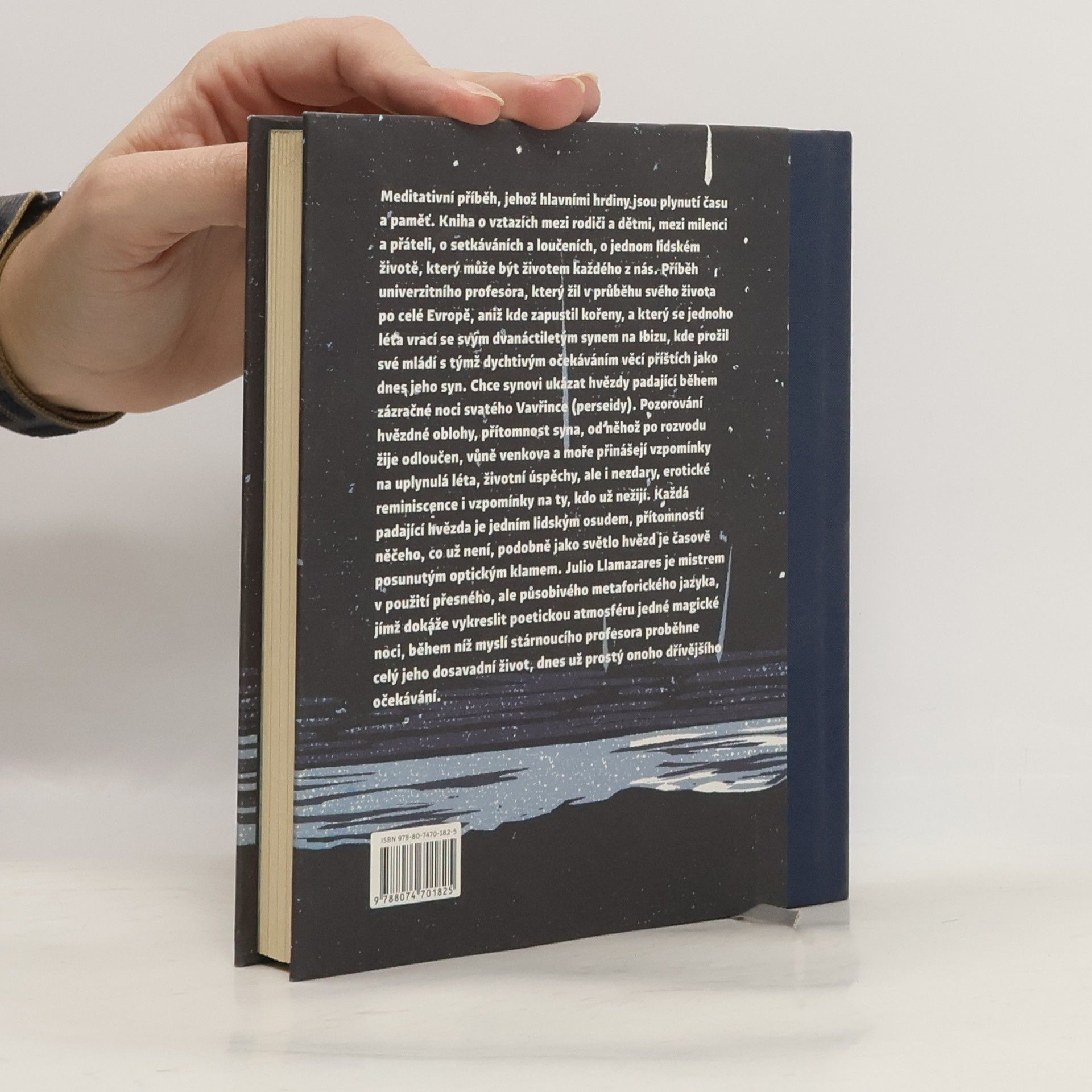 Meditativní příběh, jehož hlavními hrdiny jsou plynutí času a paměť. Kniha o vztazích mezi rodiči a dětmi, mezi milenci a přáteli, o setkáváních a loučeních, o jednom lidském životě, který může být životem každého z nás. Příběh univerzitního profesora, který žil v průběhu svého života po celé Evropě, aniž kde zapustil kořeny, a který se jednoho léta vrací se svým dvanáctiletým synem na Ibizu, kde prožil své mládí s týmž dychtivým očekáváním věcí příštích jako dnes jeho syn. Chce synovi ukázat hvězdy padající během zázračné noci svatého Vavřince (perseidy). Pozorování hvězdné oblohy, přítomnost syna, od něhož po rozvodu žije odloučen, vůně venkova a moře přinášejí vzpomínky na uplynulá léta, životní úspěchy, ale i nezdary, erotické reminiscence i vzpomínky na ty, kdo už nežijí. Každá padající hvězda je jedním lidským osudem, přítomností něčeho, co už není, podobně jako světlo hvězd je časově posunutým optickým klamem. Julio Llamazares je mistrem v použití přesného, ale působivého metaforického jazyka, jímž dokáže vykreslit poetickou atmosféru jedné magické noci, během níž myslí stárnoucího profesora proběhne celý jeho dosavadní život, dnes už prostý onoho dřívějšího očekávání.
