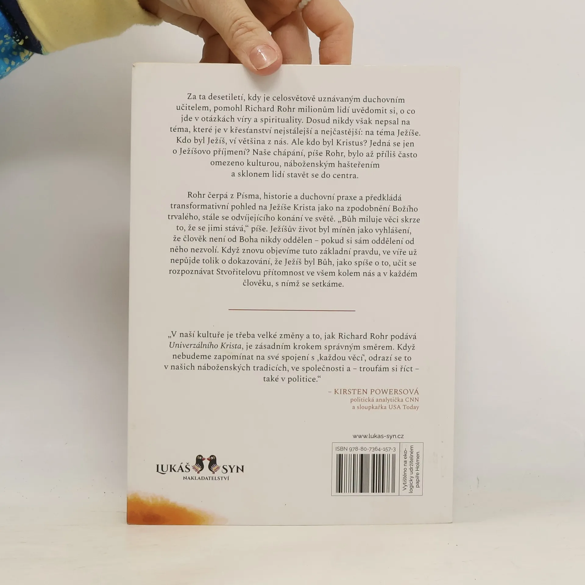 Za ta desetiletí, kdy je celosvětově uznávaným duchovním učitelem, pomohl Richard Rohr milionům lidí uvědomit si, o co jde v otázkách víry a spirituality. Dosud nikdy však nepsal na téma, které je v křesťanství nejstálejší a nejčastější: na téma Ježíše. Kdo byl Ježíš, ví většina z nás. Ale kdo byl Kristus? Jedná se jen o Ježíšovo příjmení? Naše chápání, píše Rohr, bylo až příliš často omezeno kulturou, náboženským hašteřením a sklonem lidí stavět se do centra. Rohr čerpá z Písma, historie a duchovní praxe a předkládá transformativní pohled na Ježíše Krista jako na zpodobnění Božího trvalého, stále se odvíjejícího konání ve světě. „Bůh miluje věci skrze to, že se jimi stává,“ píše. Ježíšův život byl míněn jako vyhlášení, že člověk není od Boha nikdy oddělen – pokud si sám oddělení od něho nezvolí. Když znovu objevíme tuto základní pravdu, ve víře už nepůjde tolik o dokazování, že Ježíš byl Bůh, jako spíše o to, učit se rozpoznávat Stvořitelovu přítomnost ve všem kolem nás a v každém člověku, s nímž se setkáme.