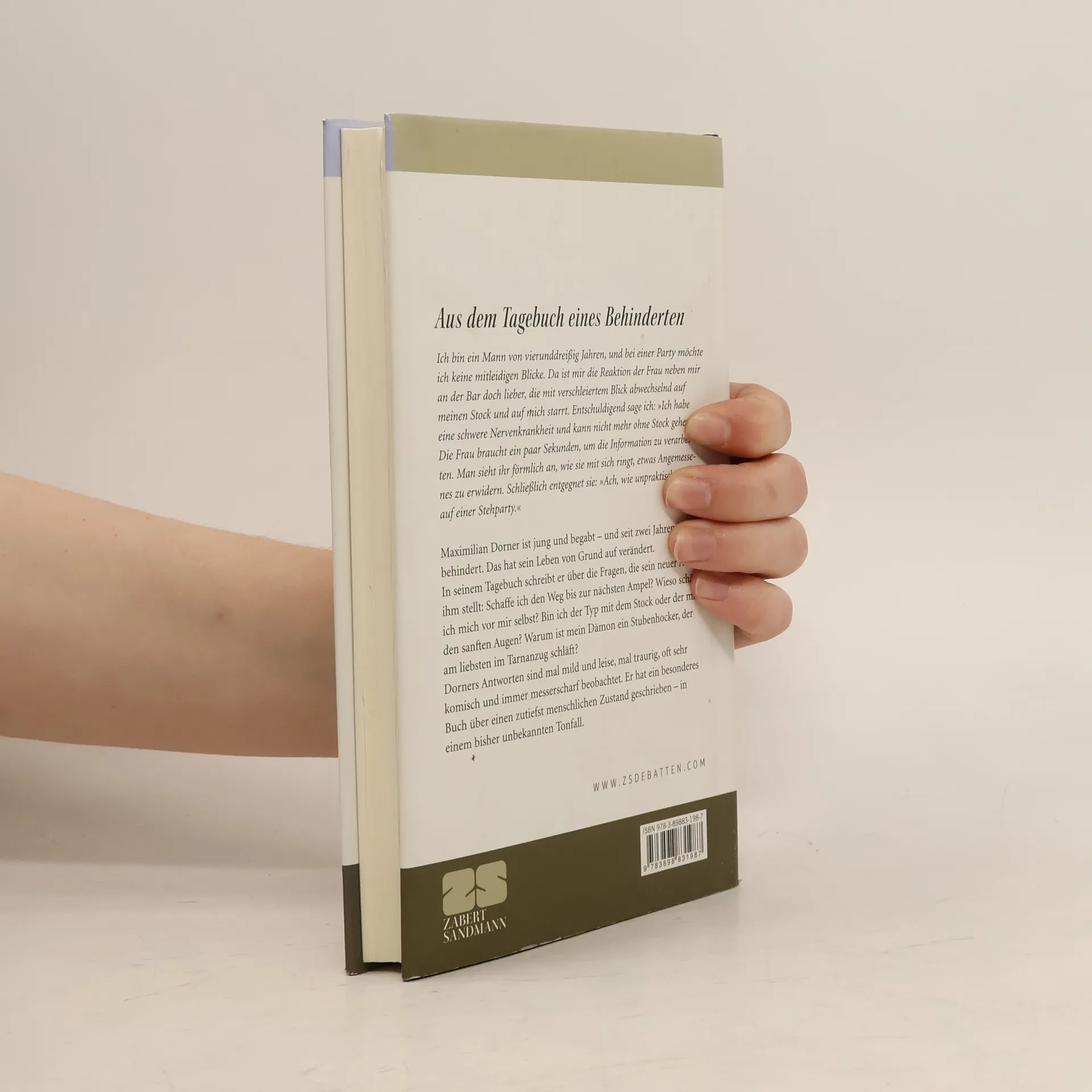 Maximilian Dorner ist jung und begabt – und seit zwei Jahren ist er behindert. Das hat sein Leben von Grund auf verändert. In seinem Tagebuch schreibt er über die Fragen, die sein neuer Alltag ihm stellt: Schaffe ich den Weg bis zur nächsten Ampel? Wieso schäme ich mich vor mir selbst? Bin ich der Typ mit dem Stock oder der mit den sanften Augen? Warum ist mein Dämon ein Stubenhocker, der am liebsten im Tarnanzug schläft? Dorners Antworten sind mal mild und leise, mal traurig, oft sehr komisch und immer messerscharf beobachtet. Er hat ein besonderes Buch über einen zutiefst menschlichen Zustand geschrieben – in einem bisher unbekannten Tonfall.