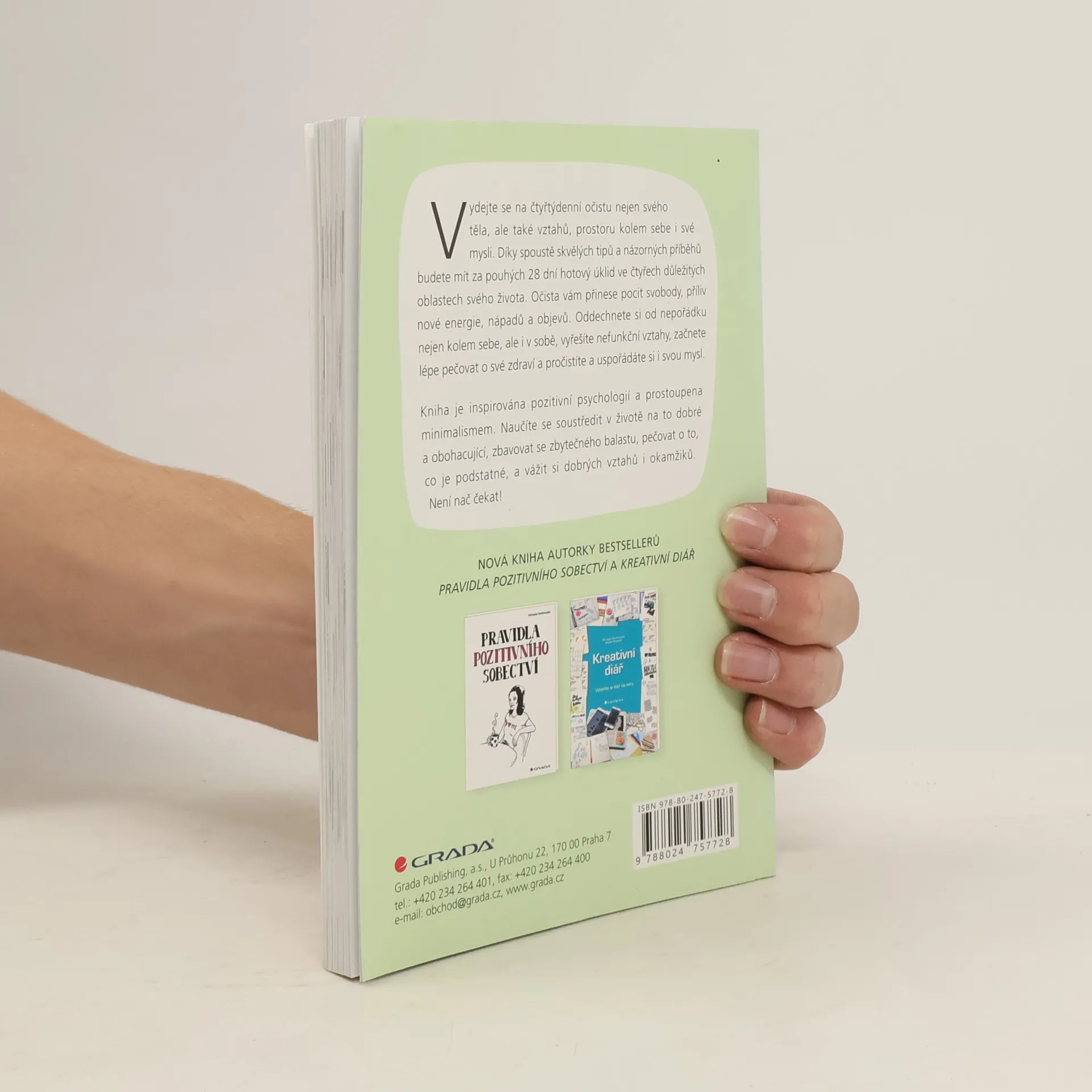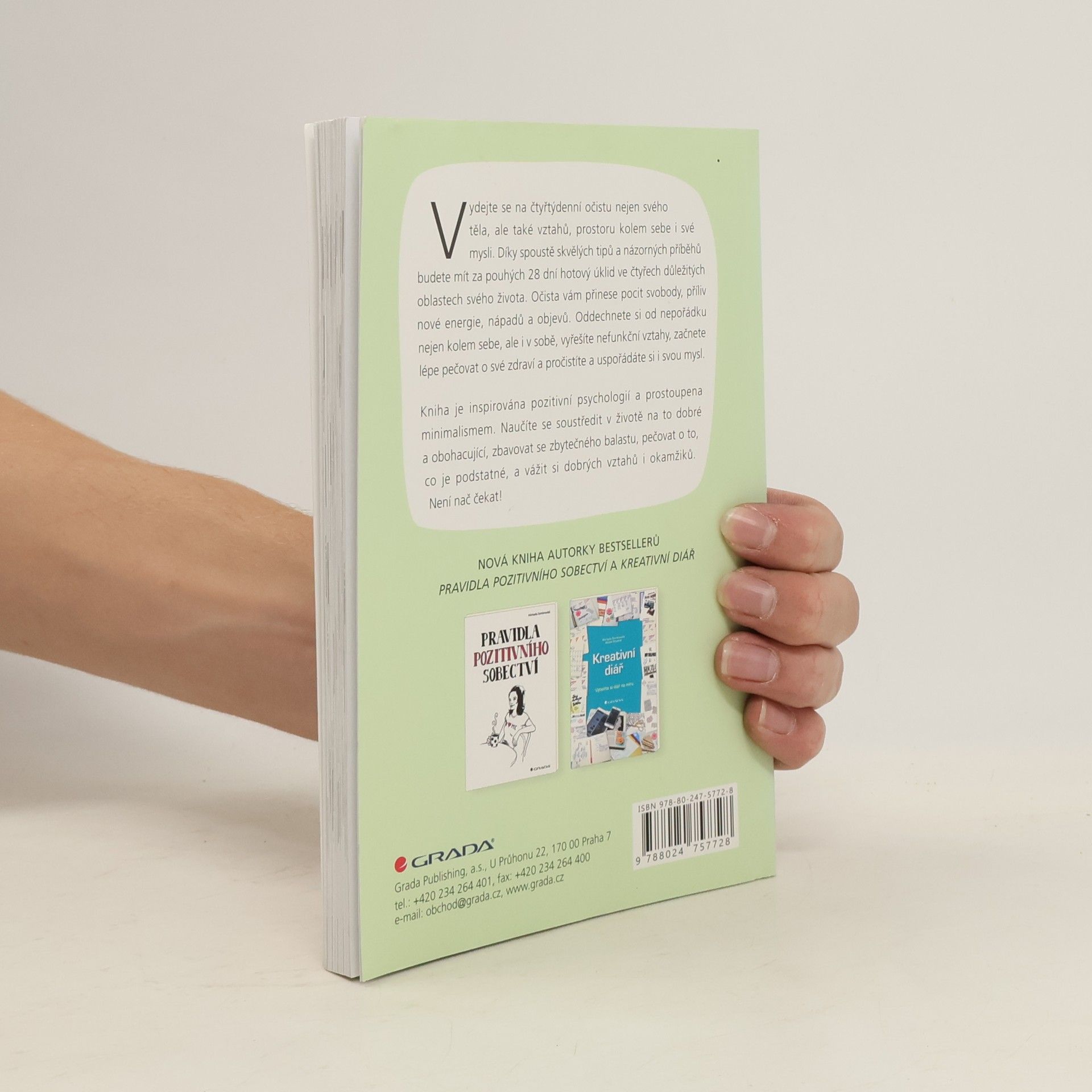 Seznamte se s novou knihou autorky bestsellerů „Pravidla pozitivního sobectví“ a „Kreativní diář“. Vydejte se na čtyřtýdenní očistu nejen svého těla, ale také vztahů, prostoru kolem sebe i své mysli. Díky spoustě skvělých tipů a názorných příběhů budete mít za pouhých 28 dní hotový úklid ve čtyřech důležitých oblastech svého života. Očista vám přinese pocit svobody, příliv nové energie, nápadů a objevů. Oddechnete si od nepořádku nejen kolem sebe, ale i v sobě, vyřešíte nefunkční vztahy, začnete lépe pečovat o své zdraví a pročistíte a uspořádáte si i svou mysl. Kniha je inspirována pozitivní psychologií a prostoupena minimalismem. Naučíte se soustředit v životě na to dobré a obohacující, zbavovat se zbytečného balastu, pečovat o to, co je podstatné, a vážit si dobrých vztahů i okamžiků. Není nač čekat!