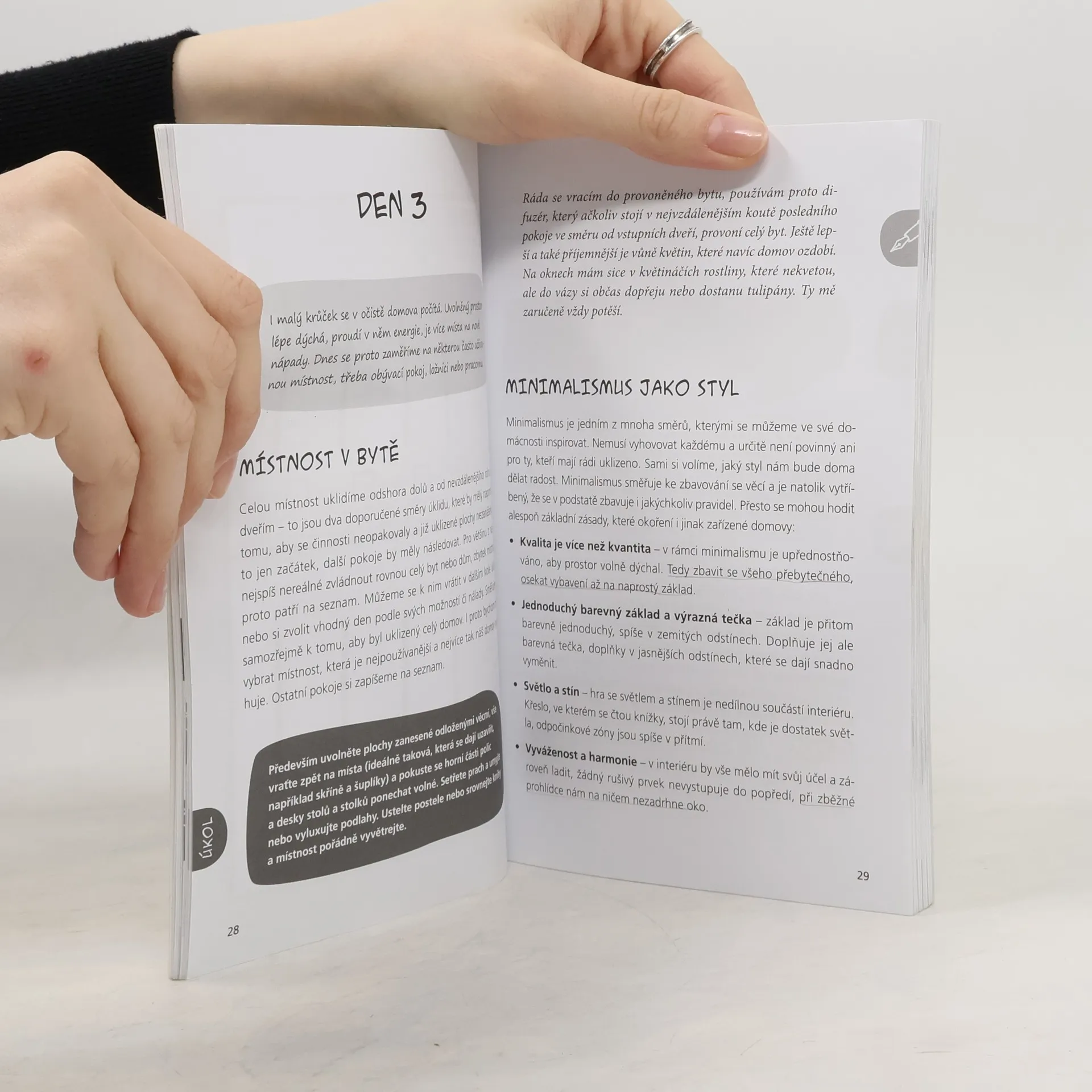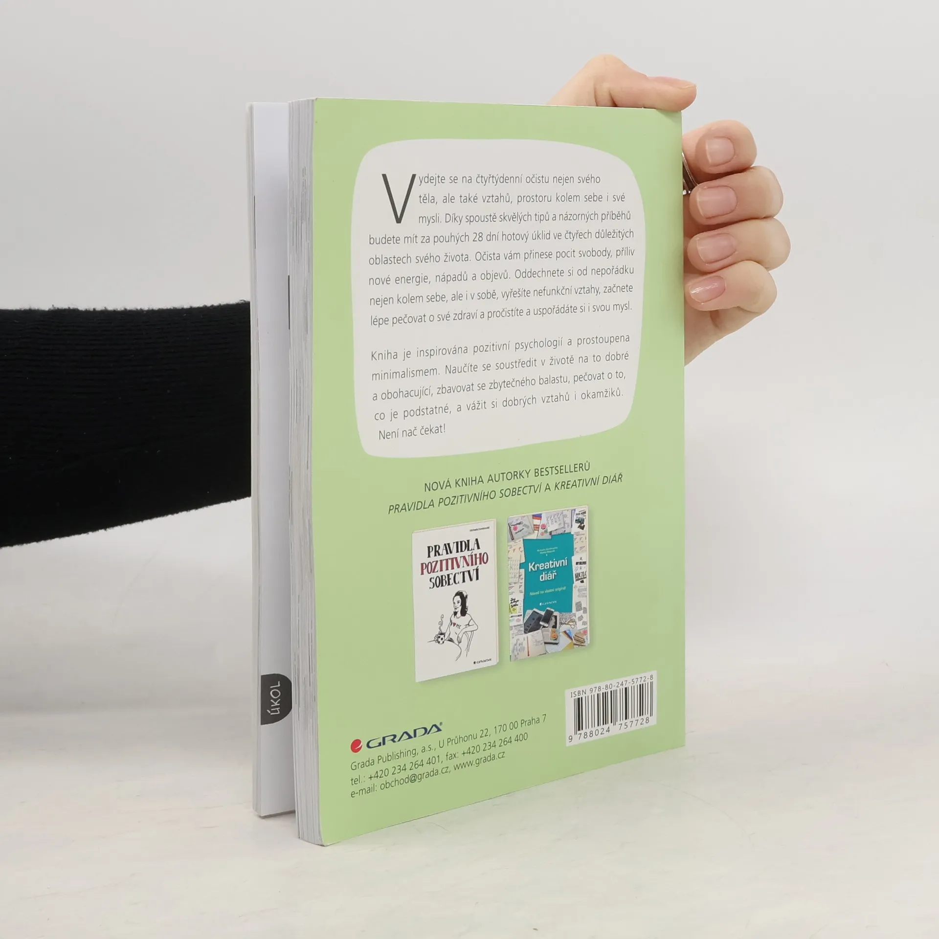 Seznamte se s novou knihou autorky bestsellerů „Pravidla pozitivního sobectví“ a „Kreativní diář“. Vydejte se na čtyřtýdenní očistu nejen svého těla, ale také vztahů, prostoru kolem sebe i své mysli. Díky spoustě skvělých tipů a názorných příběhů budete mít za pouhých 28 dní hotový úklid ve čtyřech důležitých oblastech svého života. Očista vám přinese pocit svobody, příliv nové energie, nápadů a objevů. Oddechnete si od nepořádku nejen kolem sebe, ale i v sobě, vyřešíte nefunkční vztahy, začnete lépe pečovat o své zdraví a pročistíte a uspořádáte si i svou mysl. Kniha je inspirována pozitivní psychologií a prostoupena minimalismem. Naučíte se soustředit v životě na to dobré a obohacující, zbavovat se zbytečného balastu, pečovat o to, co je podstatné, a vážit si dobrých vztahů i okamžiků. Není nač čekat!