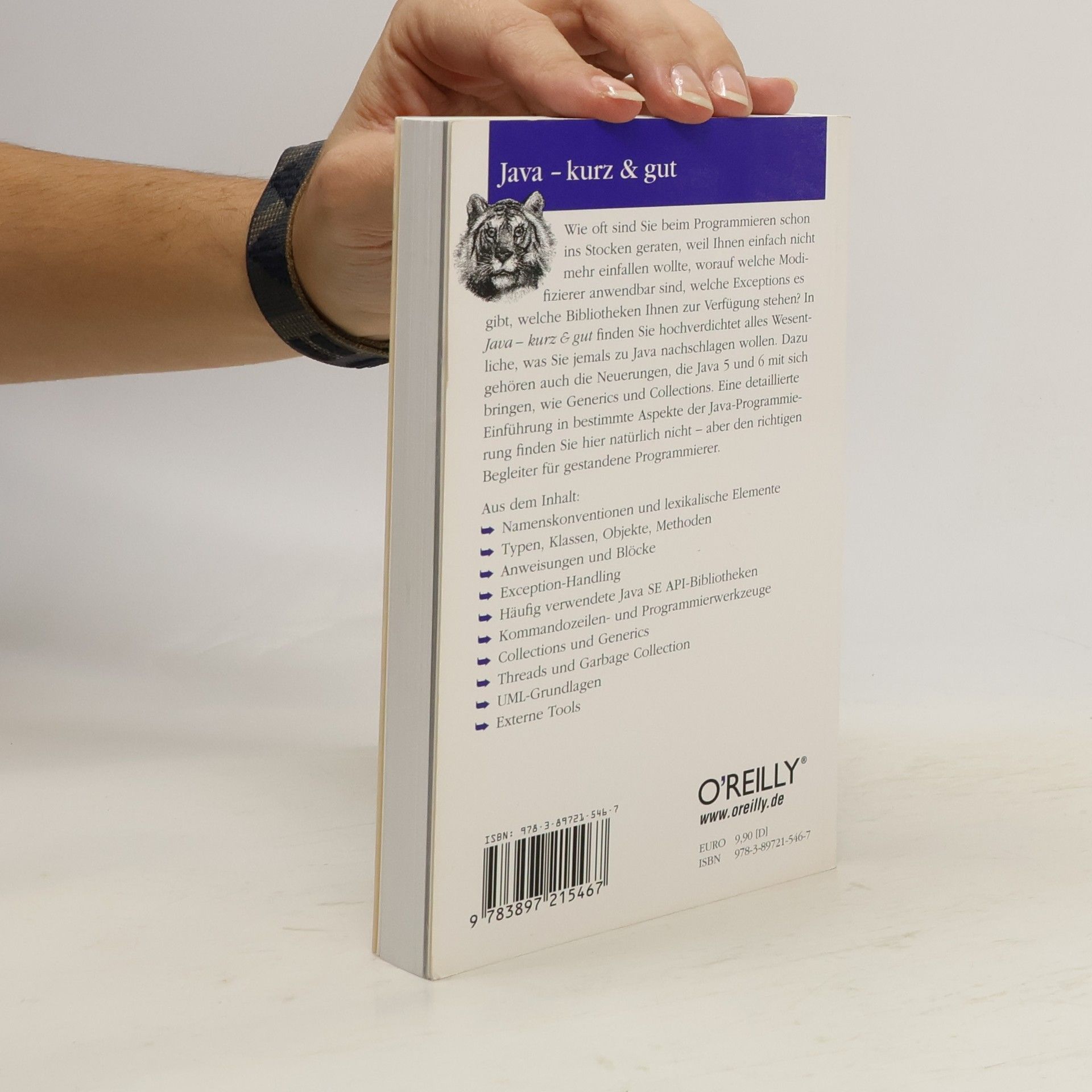 Wie oft sind Sie beim Programmieren schon ins Stocken geraten, weil Ihnen einfach nicht mehr einfallen wollte, worauf welche Modifizierer anwendbar sind, welche Exceptions es gibt, welche Bibliotheken Ihnen zur Verfügung stehen? In „Java - kurz & gut“ finden Sie hochverdichtet alles Wesentliche, was Sie jemals zu Java nachschlagen wollen. Dazu gehören auch die Neuigkeiten, die Java 5 und 6 mit sich bringen, wie Generics und Collections. Eine detaillierte Einführung in bestimmte Aspekte der Java-Programmierung finden Sie hier natürlich nicht - aber den richtigen Begleiter für gestandene Coder. Aus dem Inhalt: * Namenskonventionen und lexikalische Elemente * Typen, Klassen, Objekte, Methoden * Anweisungen und Blöcke * Exception-Handling * Häufig verwendete Java SE API-Bibliotheken * Kommandozeilen- und Programmierwerkzeuge * Collections und Generics * Threads und Garbage Collection * UML-Grundlagen * Externe Tools