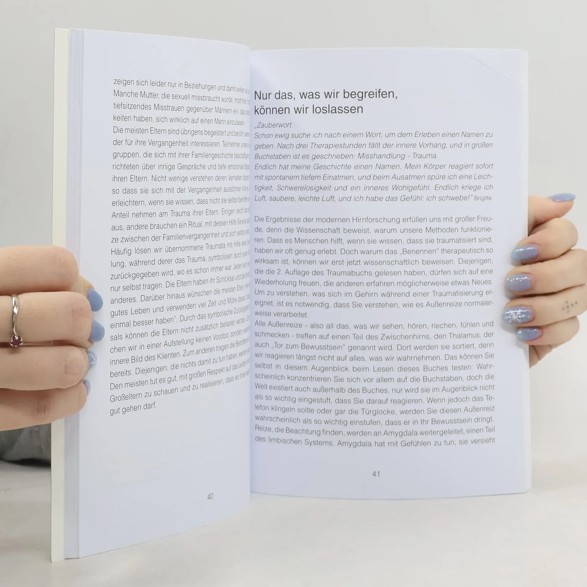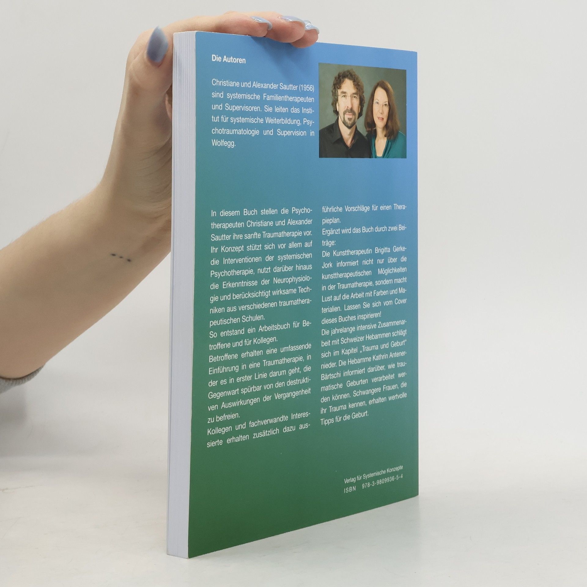 In diesem Buch stellen Christiane und Alexander Sautter ihre sanfte Traumatherapie vor. Ihr Konzept stützt sich auf die Interventionen der systemischen Psychotherapie, nutzt darüber hinaus die Erkenntnisse der Neurowissenschaften und berücksichtigt wirksame Techniken verschiedener traumatherapeutischer Schulen. So entstand ein Arbeitsbuch für Betroffene und Kollegen. Betroffene erhalten eine umfassende Einführung in eine sanfte Traumatherapie, Kollegen und fachverwandte Interessierte zusätzlich dazu ausführliche Vorschläge für die therapeutische Praxis. Ergänzt wird das Buch durch zwei Beiträge: Die Kunsttherapeutin Brigitta Gehrke-Jork informiert nicht nur über die kunsttherapeutischen Möglichkeiten in der Traumatherapie, sondern macht Lust auf die Farben und Materialien. Lassen Sie sich vom Cover dieses Buches inspirieren! Die jahrelange intensive Zusammenarbeit mit Schweizer Hebammen schlägt sich im Kapitel „Trauma und Geburt„ nieder. Die Hebamme Kathrin Antener- Bärtschi informiert darüber, wie traumatische Geburten verarbeitet werden können. Schwangere Frauen, die ihr Trauma kennen, erhalten wertvolle Tipps für die Geburt.
