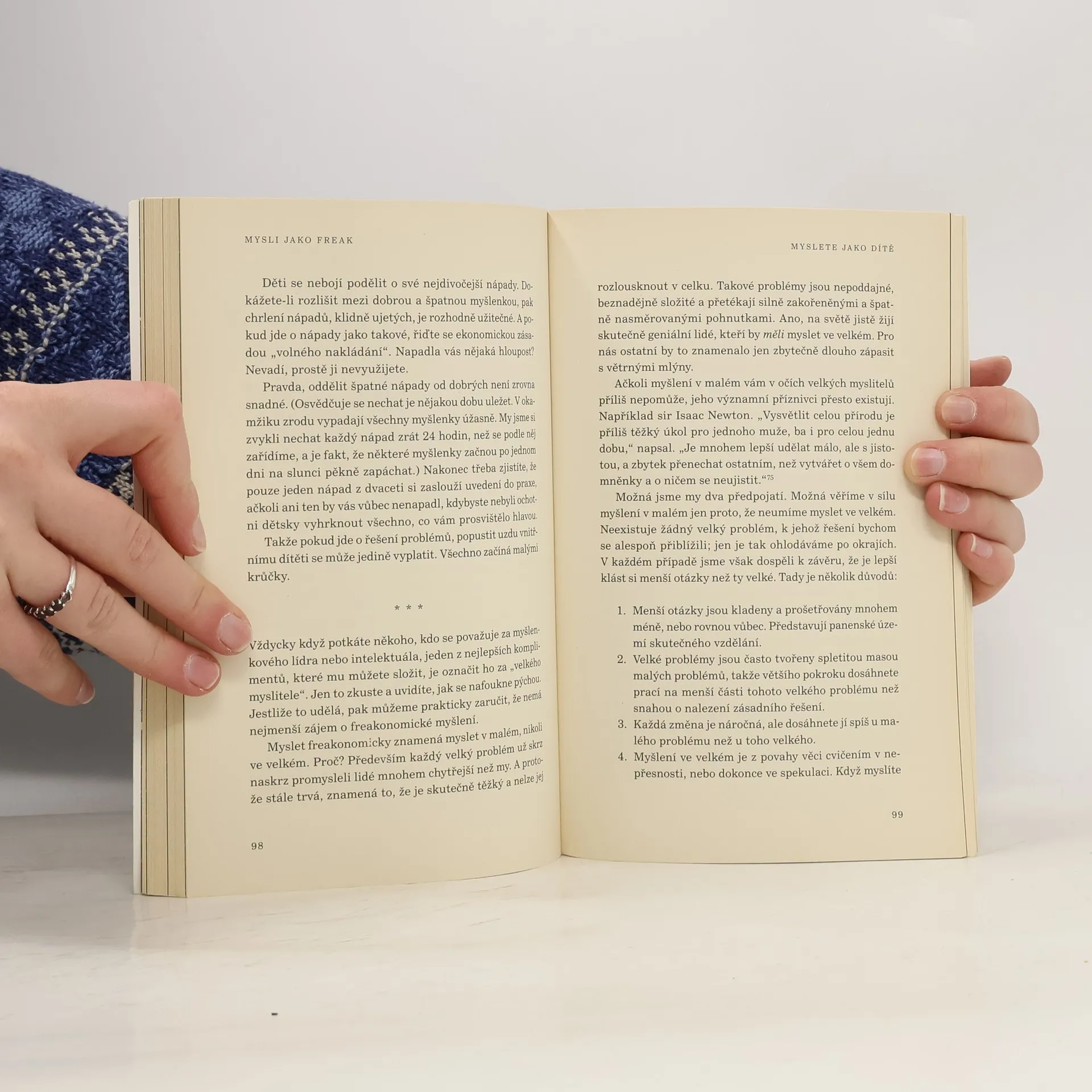 Změňte své myšlení a uvažujte jako freak, cvok, blázen, ujeťák, exot. Běžný pohled na svět obracely naruby už předchozí světově úspěšné knihy, Freakonomics (2005, č. Špekonomie 2006) a Superfreakonomics (2010, č. 2010), nyní přicházejí autoři s ještě revolučnějším přístupem založeným na nekonvenčním způsobu uvažování a radí, jak být v myšlení plodnější, tvořivější a racionálnější. Metoda je obecně použitelná a probíraná témata neznají hranic, od byznysu přes filantropii a sport až k politice. Tak odhalíme tajemství úspěchu Japonce, který se stal přeborníkem v pojídání hot-dogů, dozvíme se důvod, proč australský lékař spolykal dávku nebezpečných bakterií nebo proč se úspěšný podnikatel pustil do charity podporující plastické operace dětí z chudých rodin z celého světa. To vše v podmanivém a zábavném podání zkušených vypravěčů. Od autorů světových bestsellerů Freakonomics a Superfreakonomics.