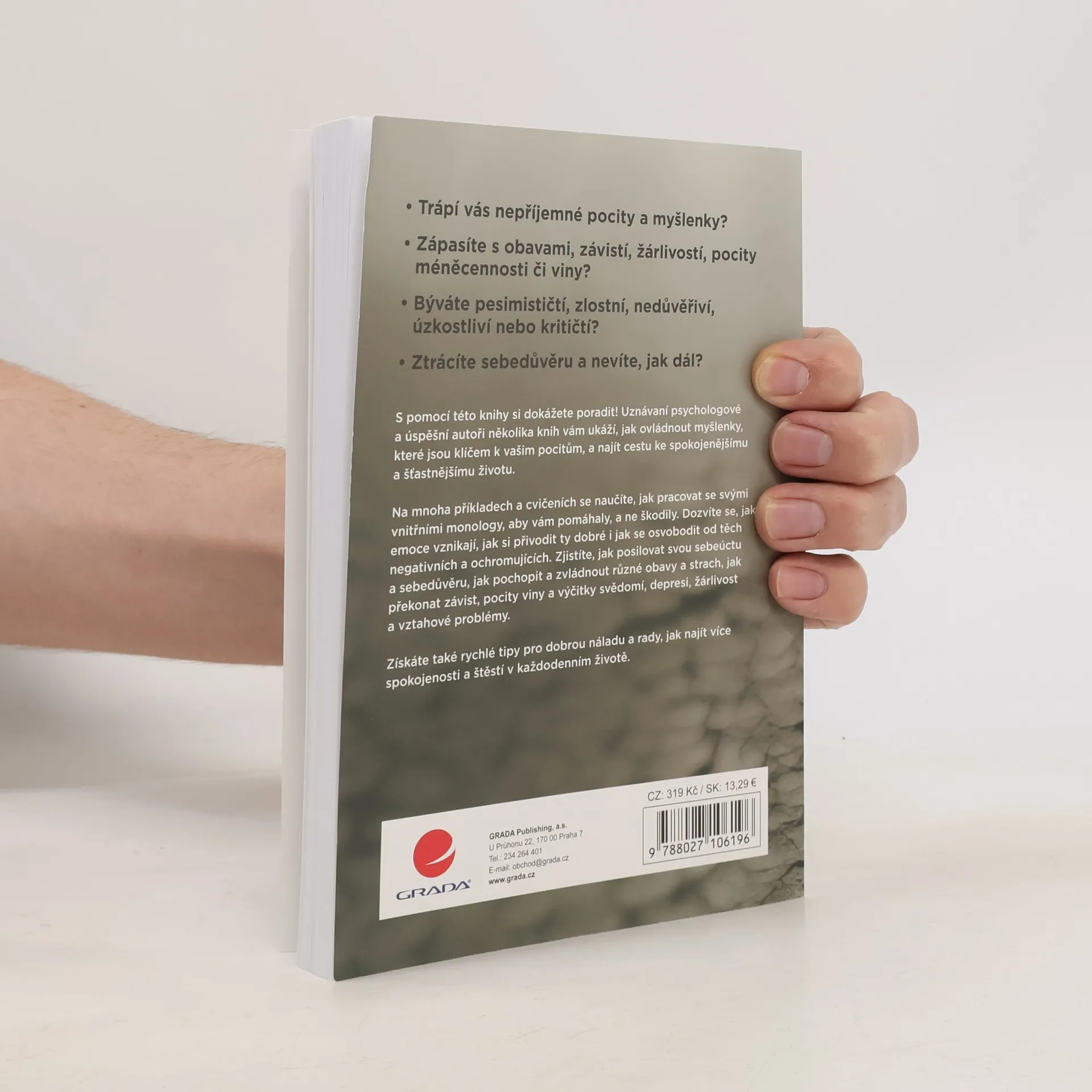 Zápasíte s obavami, závistí, žárlivostí, pocity méněcennosti či viny? Býváte pesimističtí, zlostní, nedůvěřiví nebo kritičtí? Ztrácíte sebedůvěru a nevíte, jak dál? Naučte se s touto knihou ovládnout své myšlenky, které jsou klíčem k vašim pocitům, a najít cestu ke spokojenému a šťastnému životu. Na mnoha příkladech a cvičeních se naučíte, jak pracovat se svými vnitřními monology, aby vám pomáhaly, a ne škodily. Dozvíte se, jak emoce vznikají, jak si přivodit ty dobré i jak se osvobodit od těch negativních a ochromujících. Zjistíte, jak posilovat svou sebeúctu a sebedůvěru, jak pochopit a zvládnout různé obavy a strach, jak překonat závist, pocity viny a výčitky svědomí, depresi, žárlivost a vztahové problémy. Získáte také rychlé tipy pro dobrou náladu a rady, jak najít více spokojenosti a štěstí v každodenním životě.