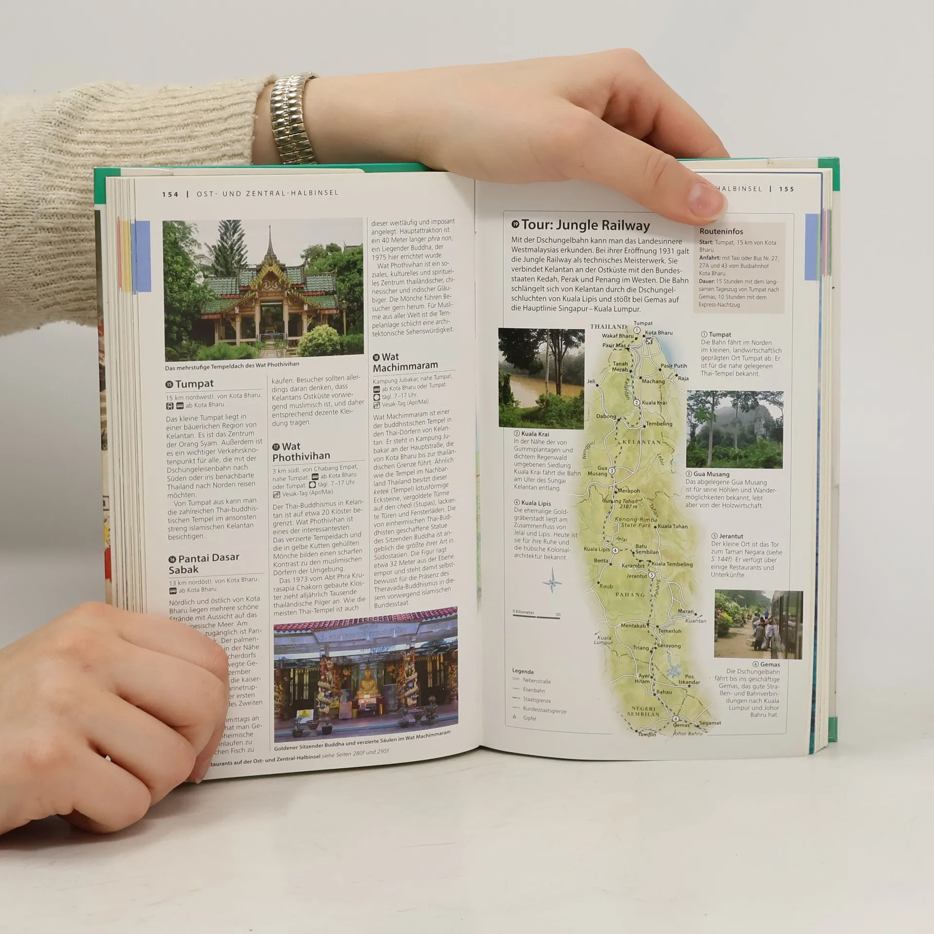 Weiße Sandstrände, faszinierende Nationalparks, beeindruckende Städte und historische Architektur: Malaysia & Singapur bieten zweifellos einige der spektakulärsten Landschaften Südostasiens. Hier kann man die ältesten Regenwälder der Welt erkunden, den berühmten Merdeka Square in Kuala Lumpur besuchen oder eine Flussrundfahrt auf dem Singapore River machen. Sie finden in diesem Buch für jedes Vorhaben alle Informationen, die Sie benötigen: vom prachtvollen Hotel aus den 1920er Jahren mit Wellnessbereich über asiatische Lokale, in denen die Speisen in offenen Küchen zubereitet werden bis zum Restaurant in Singapur mit Aussicht über die ganze Stadt. Wichtige Sehenswürdigkeiten, wie die Singapore Botanic Gardens oder der Thian Hock Keng Temple werden anhand von detaillierten Karten gezeigt. Außerdem gibt es viele Informationen zur Flora und Fauna, den Religionen in Malaysia und Singapur und dem Kunsthandwerk. Erstmalig bei einem Reiseführer gibt es ein Mini-Kochbuch zum Herausnehmen mit typischen Gerichten des Landes. Die hervorragenden Abbildungen - exakte Schnittzeichnungen, dreidimensionale Grundrisse, Übersichtskarten und Stadtpläne - erleichtern Ihnen die Orientierung vor Ort. Der ausführliche Praxisteil bietet aktuelle Angaben zu Hotels, Restaurants, Shopping, Nachtleben und Unterhaltung sowie praktische Tipps zu Verkehrsmitteln, Öffnungszeiten und vieles mehr.