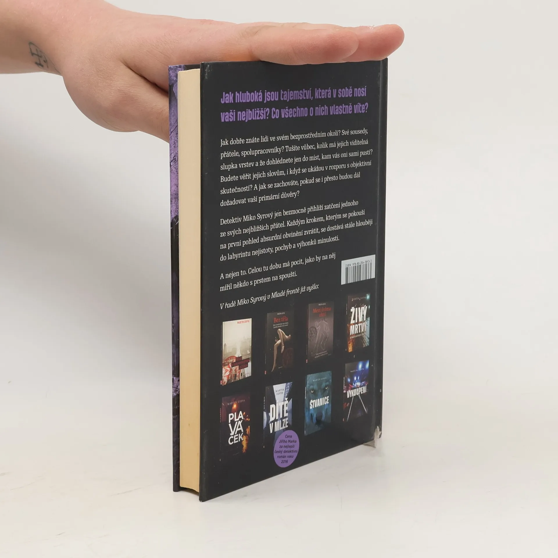 Jak dobře znáte lidi ve svém bezprostředním okolí? Své sousedy, přátele, spolupracovníky? Tušíte vůbec, kolik má jejich viditelná slupka vrstev a že dohlédnete jen do míst, kam vás oni sami pustí? Budete věřit jejich slovům, i když se ukážou v rozporu s objektivní skutečností? A jak se zachováte, pokud se i přesto budou dál dožadovat vaší primární důvěry? Detektiv Miko Syrový jen bezmocně přihlíží zatčení jednoho ze svých nejbližších přátel. Každým krokem, kterým se pokouší na první pohled absurdní obvinění zvrátit, se dostává stále hlouběji do labyrintu nejistoty, pochyb a výhonků minulosti. A nejen to. Celou tu dobu má pocit, jako by na něj mířil někdo s prstem na spoušti.
