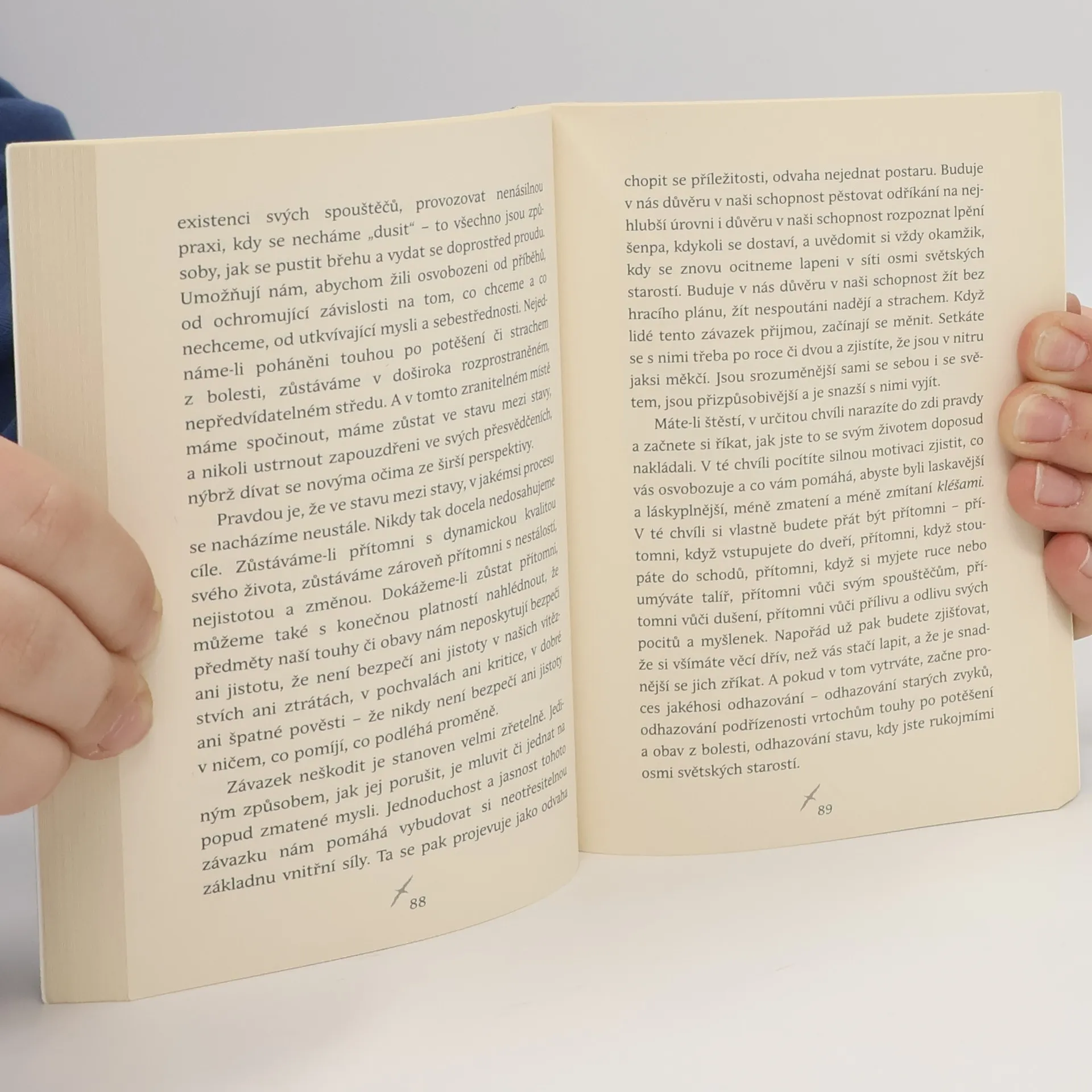Pema Chödrön vám ve své knize nabízí prakticky´ a srozumitelný návod k osobnímu růstu. Ukazuje, jak se můžete spřátelit s nevypočitatelností a nejistotou a přijmout je jako nástroje proměny svého života. Seznámí vás se třemi závazky – neškodit, prospívat druhým a přijímat svět takový, jaký je –, které vycházejí z tradičních buddhistických slibů, jež žák skládá pod dohledem učitele. Jde vlastně o tři způsoby, jak i sebeobtížnější situaci se vší její nestálostí, dynamičností a náročností přijmout jako cestu k probuzení. „Žít s lehkostí můžete tehdy, když se uvolníte ze svých životních traumat a pocítíte více lásky k sobě i druhým. Když si uvědomíte, že lidé jsou ve své podstatě dobří, že je možné zbavit se strachu a po každém pádu vždy vstát a pokračovat dál o něco silnější a moudřejší.“