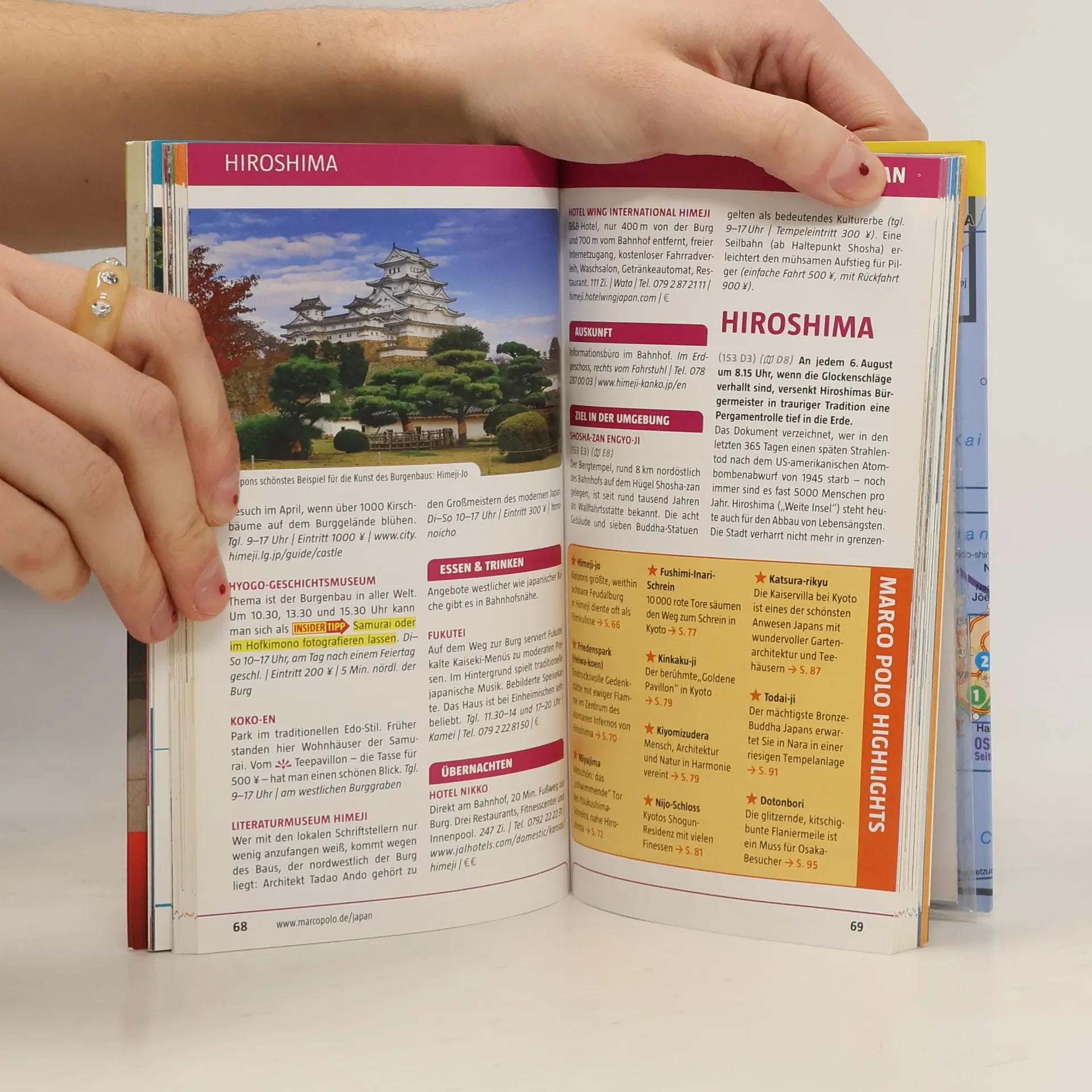 Kompakte Informationen, Insider-Tipps, Erlebnistouren und digitale Extras: Entdecken Sie Japan intensiv von Tokio bis Okinawa. Der Reiseführer bietet Ihnen eine umfassende Orientierung und zeigt Ihnen, welche Highlights Sie neben dem Fuji und dem Friedenspark in Hiroshima nicht verpassen dürfen. Erleben Sie den ehemaligen Geisha-Distrikt in Kyoto auf einer zweistündigen Tour und erfahren Sie, wo Sie auch als Normalverdiener das edle Kobe Beef zu moderaten Preisen genießen können. Die Insider-Tipps der Autoren ermöglichen Ihnen, Japan individuell und authentisch zu erleben, während die Low-Budget-Tipps helfen, Geld zu sparen. Erkunden Sie Japan in all seinen Facetten mit maßgeschneiderten Erlebnistouren, die durch ein speziell entwickeltes Design für optimale Orientierung sorgen. Die kostenlose Touren-App führt Sie digital und ohne Roaminggebühren auf den besonderen Wegen der Erlebnistouren. Zudem hält der Online-Update-Service Sie mit aktuellen Veranstaltungen und Informationen zu den Printinhalten auf dem neuesten Stand. Jeder Band enthält einen übersichtlichen Reiseatlas und eine herausnehmbare Faltkarte, in die die Erlebnistouren eingetragen sind.