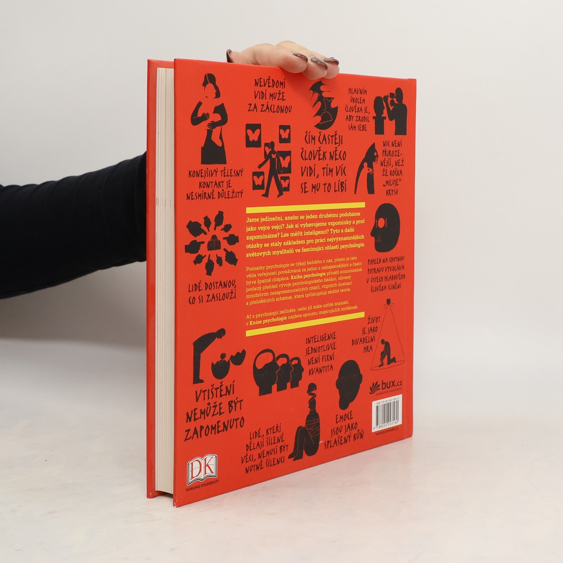 Kniha psychologie vychází jako druhá ze série přehledových oborových publikací, určených pro nejširší veřejnost od úplných začátečníků až po pokročilé studenty a odborníky. Srozumitelně vysvětluje všechny velké myšlenky tohoto fascinujícího oboru společenských věd. Provází nás vývojem psychologie od počátků až do současné doby a v chronologickém řazení seznamuje s nejvýznačnějšími psychology a jejich teoriemi. Knihu doplňují diagramy, které krok za krokem zpřehledňují složité teorie, klasická rčení, jež činí psychologii snáze zapamatovatelnou, a vtipné ilustrace.