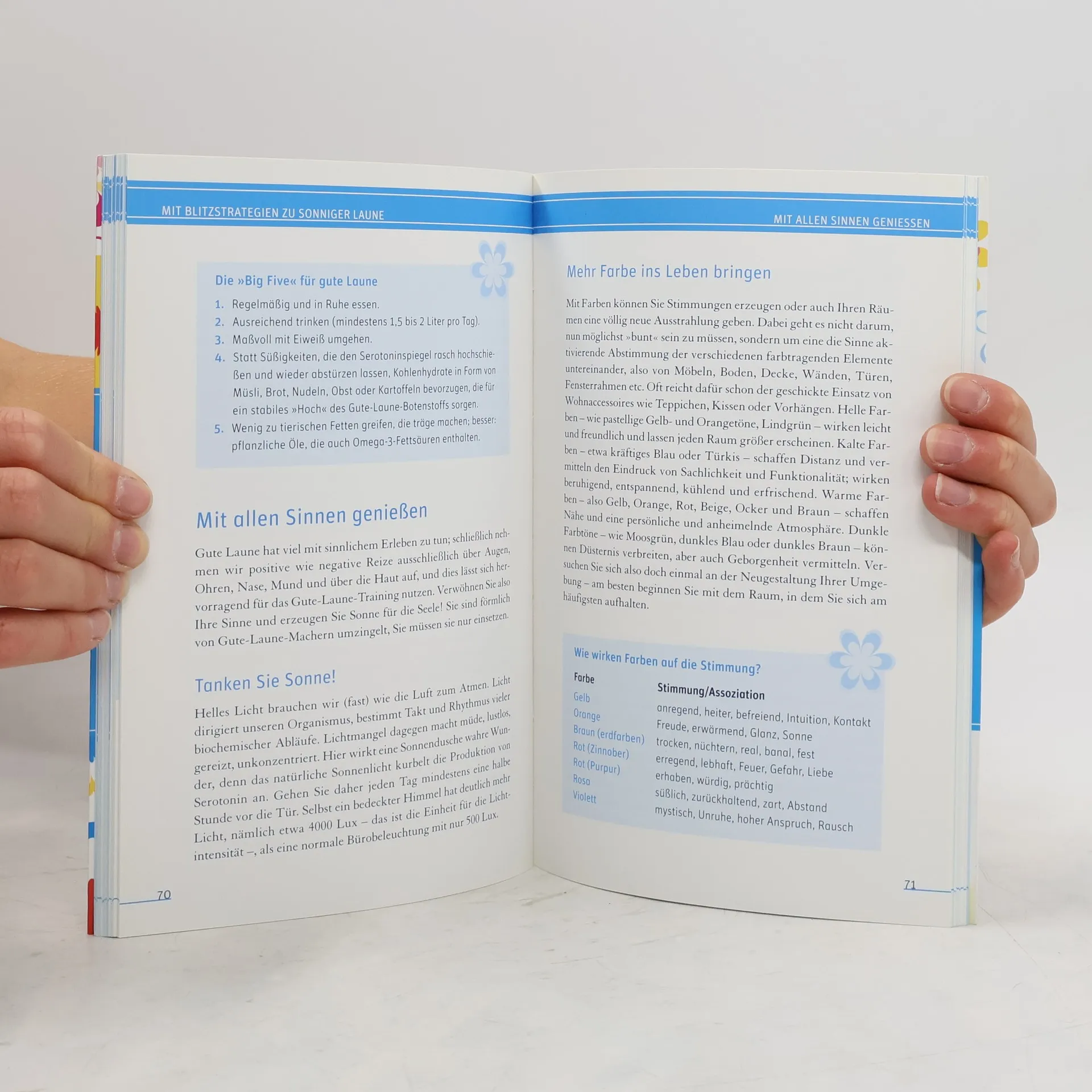 Gute Laune beflügelt, macht selbstbewusst und gibt Energie für anstehende Herausforderungen. Wer keine Lust mehr hat, sich von Stimmungskillern runterziehen zu lassen, findet hier fundierte Ratschläge. Bei akutem Stimmungstief helfen Blitzstrategien, wie z. B. die Gedankenstop-Technik. Zusätzlich stellt Sigrid Engelbrecht längerfristig angelegte Methoden vor, mit denen die innere Haltung dauerhaft positiv verändert und gefestigt werden kann. Damit ist gute Laune garantiert!