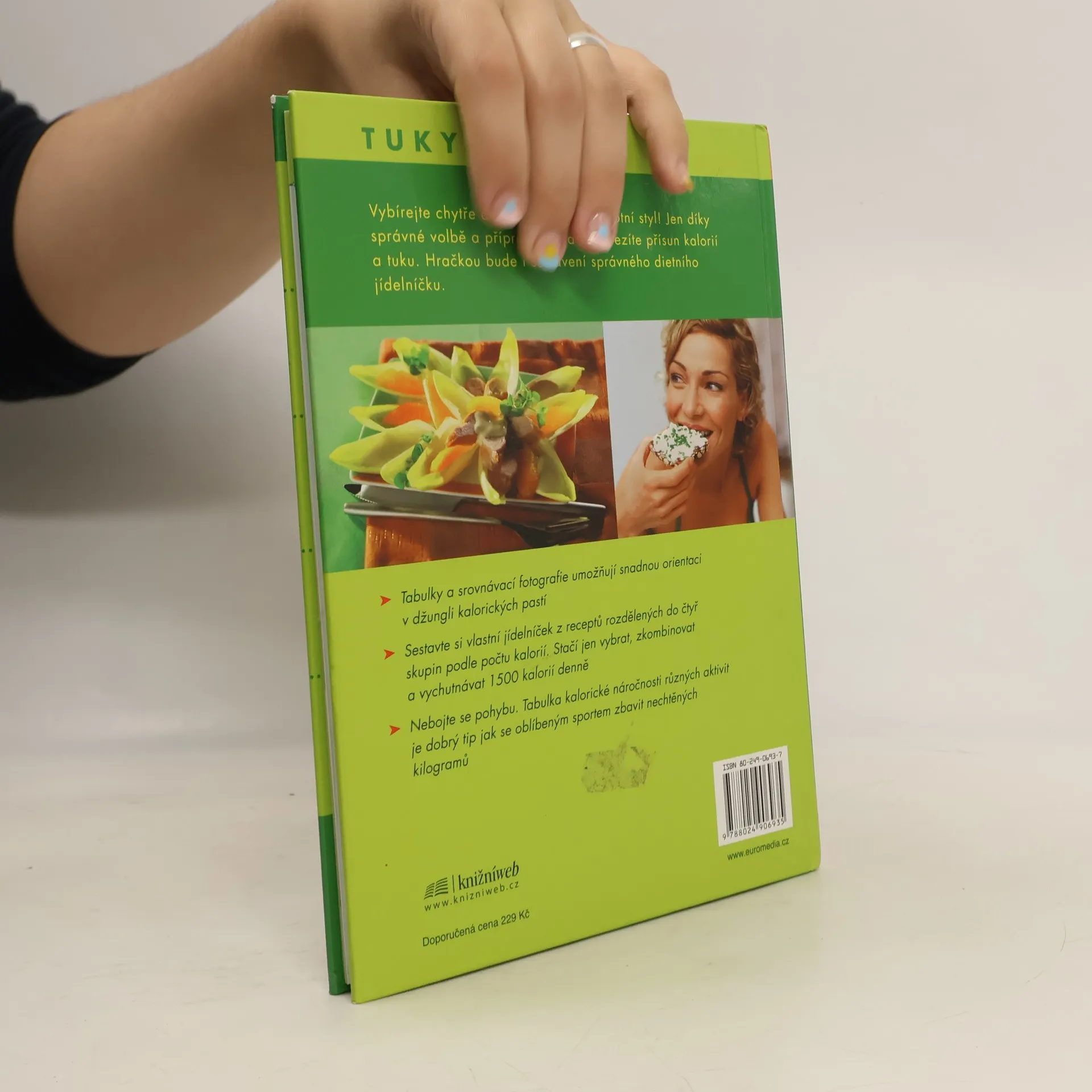 "Vybírejte chytře a zvolte si zdravý životní styl! Jen díky správné volbě a přípravě potravin omezíte přísun kalorií a tuku. Hračkou bude i sestavení správného dietního jídelníčku." Tabulky a srovnávací fotografie umožňují snadnou orientaci v džungli kalorických pastí.