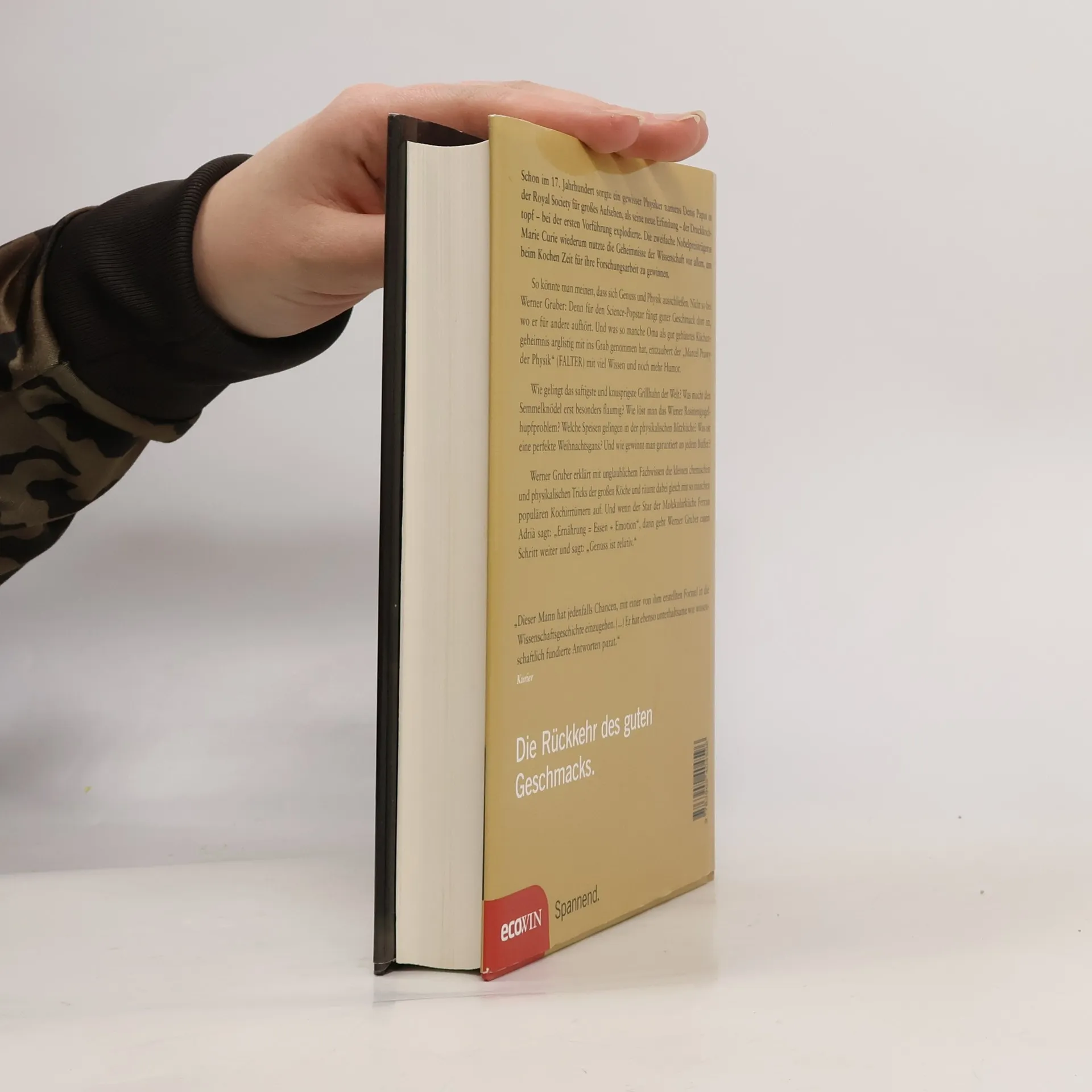 Schon im 17. Jahrhundert sorgte ein gewisser Physiker namens Denis Papin in der Royal Society für großes Aufsehen, als seine neue Erfindung – der Druckkochtopf - bei der ersten Vorführung explodierte. Die zweifache Nobelpreisträgerin Marie Curie wiederum nutzte die Geheimnisse der Wissenschaft vor allem, um beim Kochen Zeit für ihre Forschungsarbeit zu gewinnen. So könnte man meinen, dass sich Genuss und Physik ausschließen. Nicht so bei Werner Gruber: Denn für den Science-Popstar fängt guter Geschmack dort an, wo er für andere aufhört. Und was so manche Oma als gut gehütetes Küchengeheimnis arglistig mit ins Grab genommen hat, entzaubert der „Marcel Prawy der Physik“ (FALTER) mit viel Humor und simpler Physik. Wie gelingt das saftigste und knusprigste Grillhuhn der Welt? Was macht den Semmelknödel erst besonders flaumig? Wie löst man das Wiener Rosinengugelhupfproblem? Welche Speisen gelingen in der physikalischen Blitzküche? Was ist eine perfekte Weihnachtsgans? Und wie gewinnt man garantiert an jedem Buffet? Werner Gruber erklärt mit unglaublichem Fachwissen die kleinen chemischen und physikalischen Tricks der großen Köche und räumt dabei gleich mit so manchen populären Kochirrtümern auf. Und wenn der Star der Molekularküche Ferran Adrià sagt: „Ernährung = Essen + Emotion“, dann geht Werner Gruber einen Schritt weiter und sagt „Genuss ist relativ.“