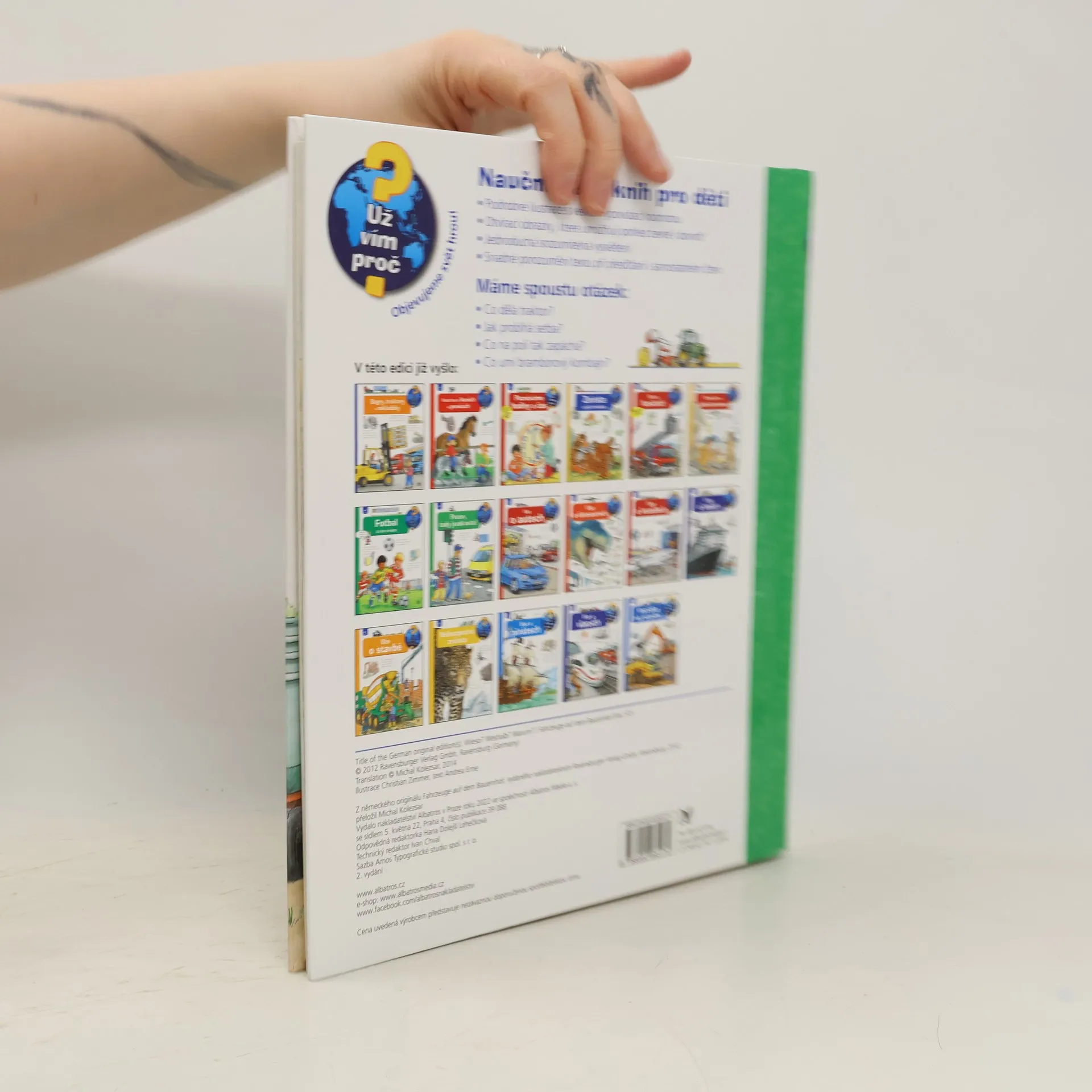 Další kniha z populární edice Už vím proč? zavede dětského čtenáře na venkov a do problematiky zemědělské výroby. Na několika stránkách je mnoho informací v krátkém srozumitelném textu a v mnoha názorných obrázcích a podrobných ilustracích, které umožňují pohled i dovnitř.