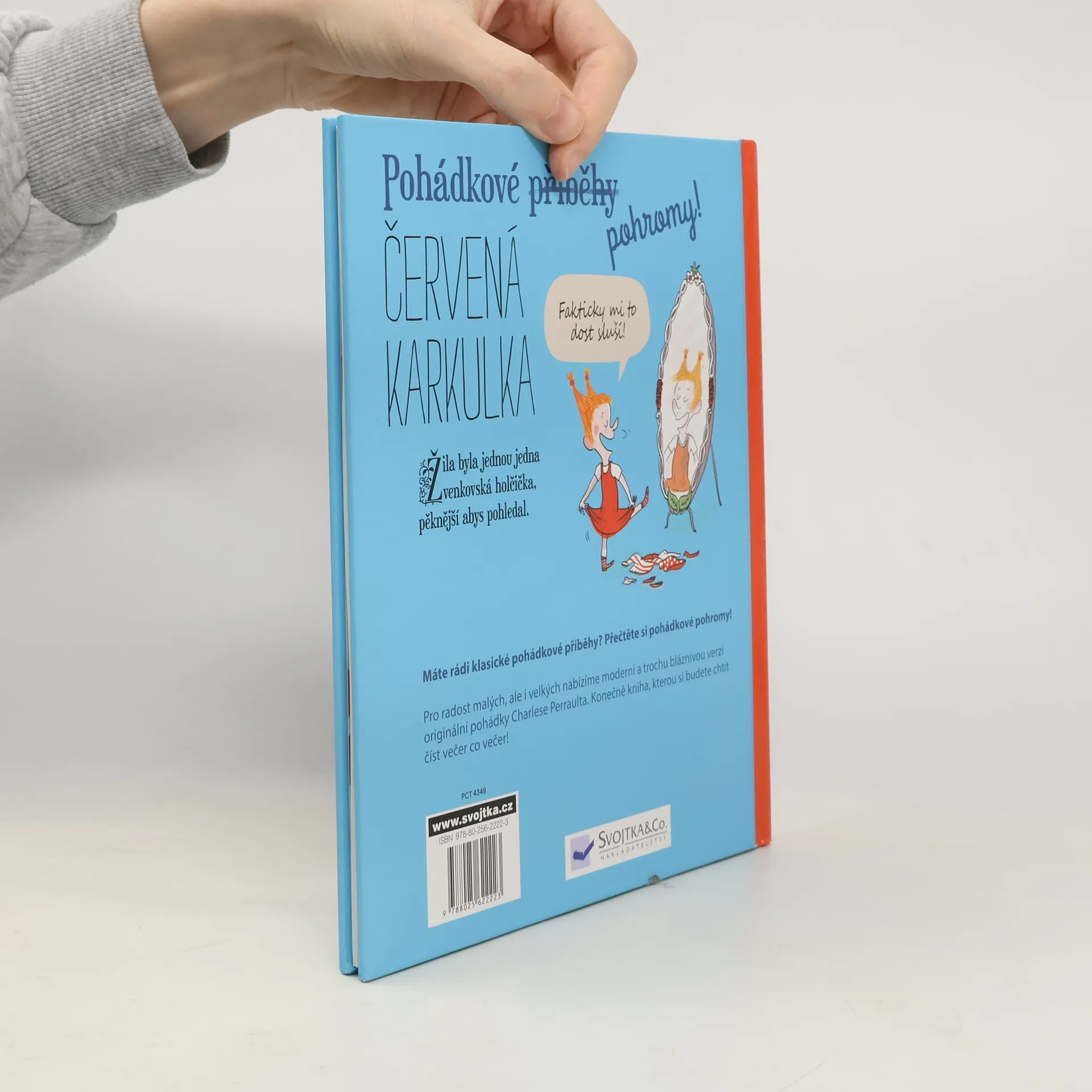Klasická pohádka, netradiční ilustrace a komentáře hlavních hrdinů, které rozesmějí vás i vaše děti. Pohádková pohroma se valí! Červená karkulka na louce netrhá kytičky, ale píše esemesky, a vlka poté, co sežere babičku i Karkulku, trápí výčitky svědomí… Říkáte si, co je to za pohádky? To jsou pohádkové pohromy! I oblíbení hrdinové z pohádek chtějí držet krok s moderní dobou, a tak text, který všichni dobře známe, patřičně okomentují. Přečtěte si klasickou pohádku s vtipnými ilustracemi i komentáři, které pobaví vás i vaše děti. Konečně kniha, kterou si budete chtít číst každý večer!