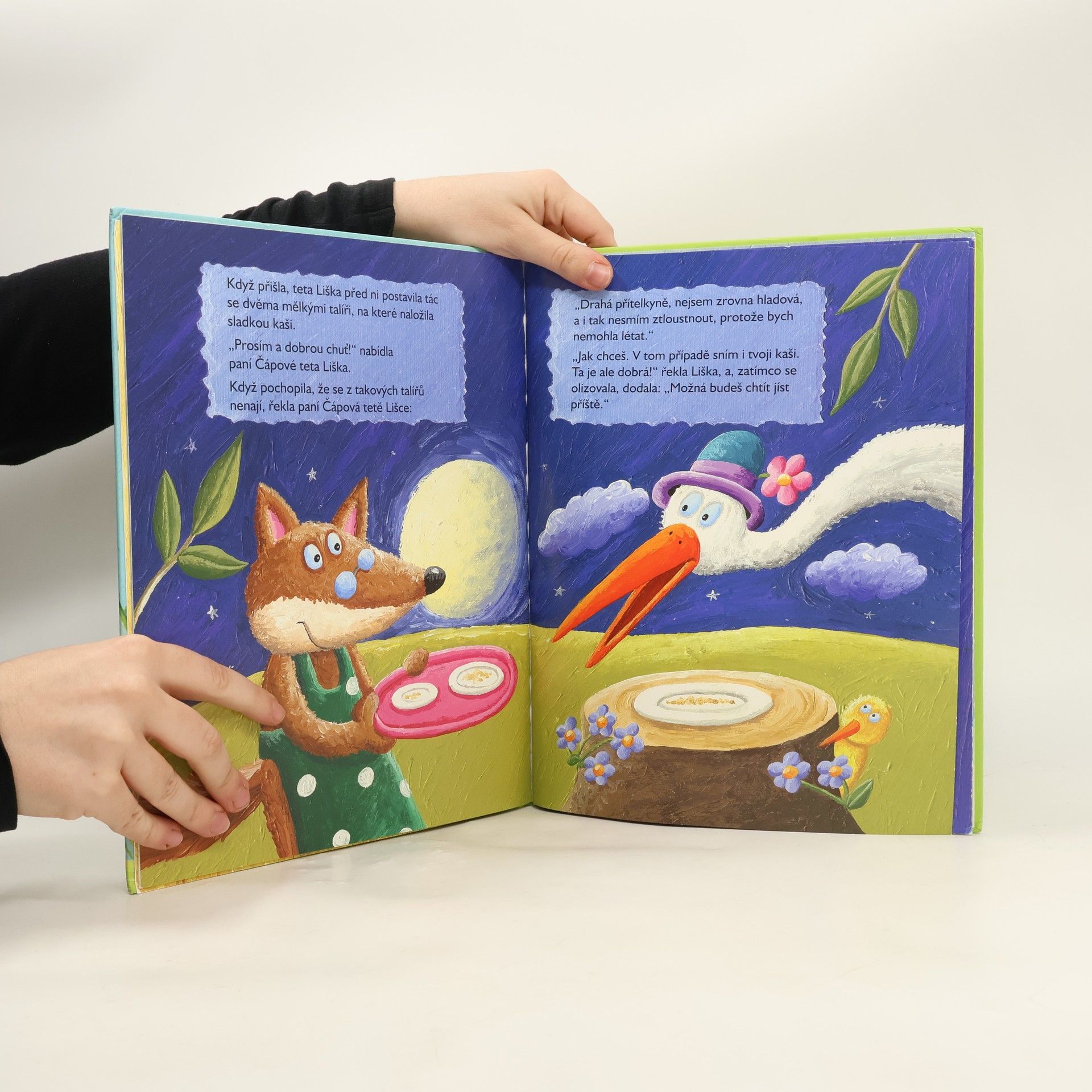 Tři Ezopovy bajky převyprávěné pro děti – O cvrčku a mravenci, Teta Liška a paní Čápová, Havran a liška. Veselé obrázky a vtipné texty pootevřou malým čtenářům dveře do světa literatury.