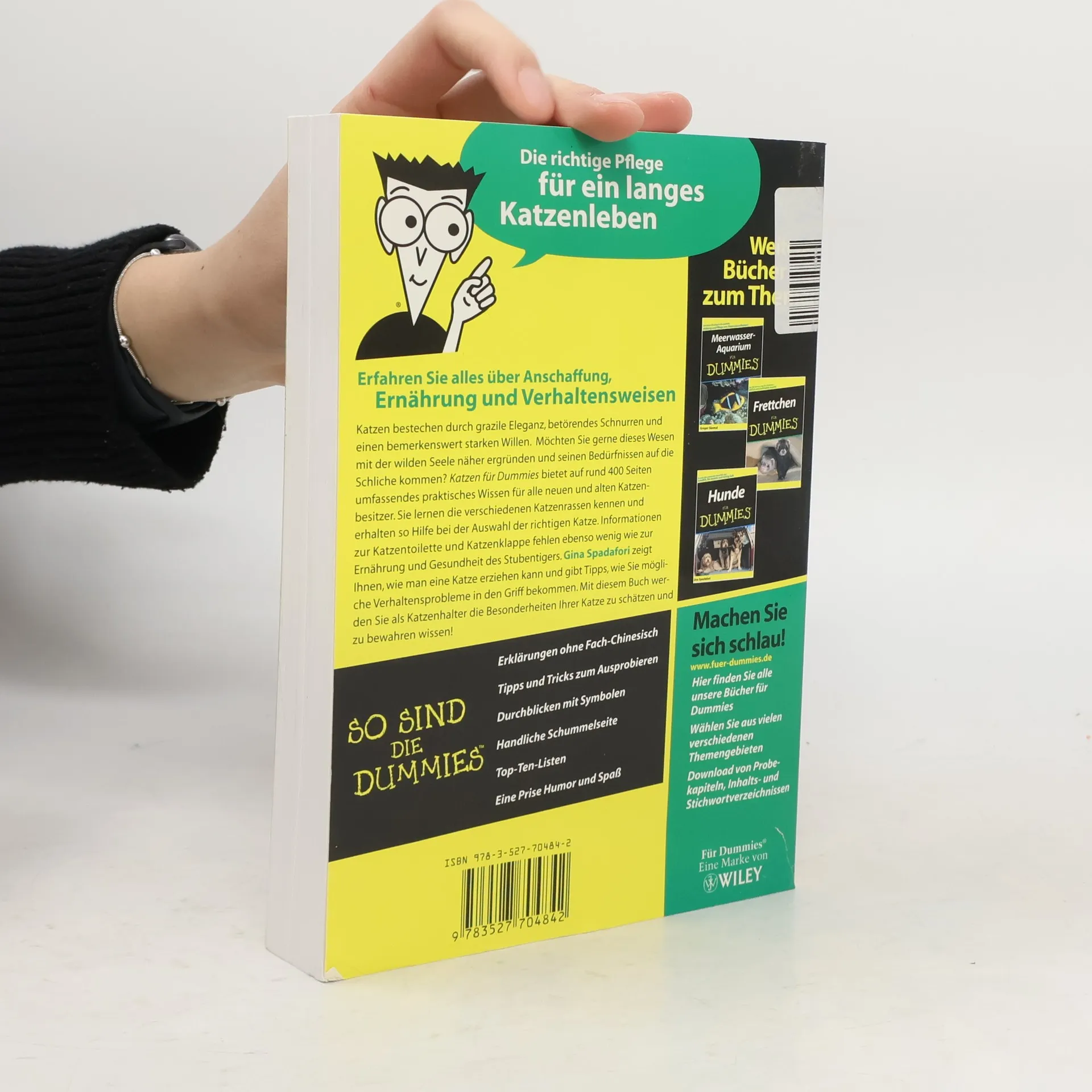 „Katzen für Dummies“ bietet auf rund 400 Seiten umfassendes praktisches Wissen für alle neuen und alten Katzenbesitzer. Sie lernen die verschiedenen Katzenrassen kennen und erhalten so Hilfe bei der Auswahl der richtigen Katze. Informationen zur Katzentoilette und Katzenklappe fehlen ebenso wenig wie zur Ernährung und Gesundheit des Stubentigers. Die Autorin Gina Spadafori zeigt Ihnen, wie man selbst eine Katze erziehen kann und gibt Tipps, wie Sie mögliche Verhaltensprobleme in den Griff bekommen. Mit diesem Buch werden Sie als Katzenhalter die Besonderheiten Ihrer Katze zu schätzen wissen.