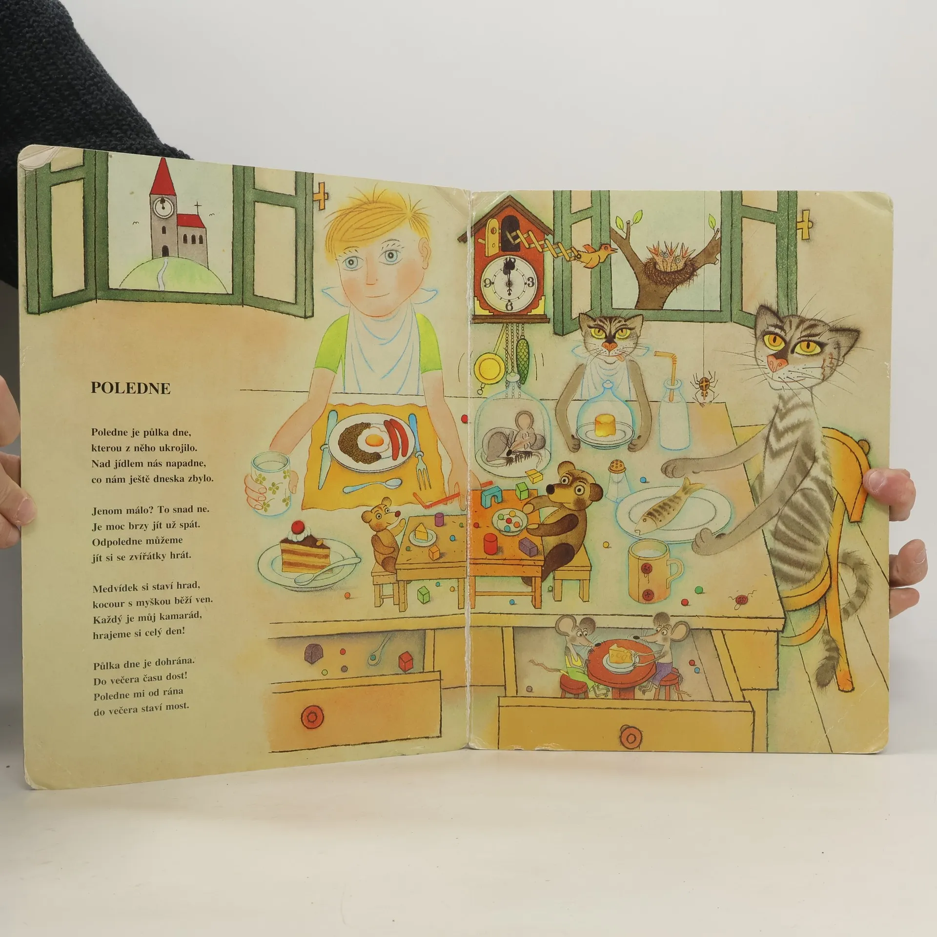 Velkoformátová kniha pro děti, která přináší pomocí básniček a ilustrací přehled činností běžného dne.