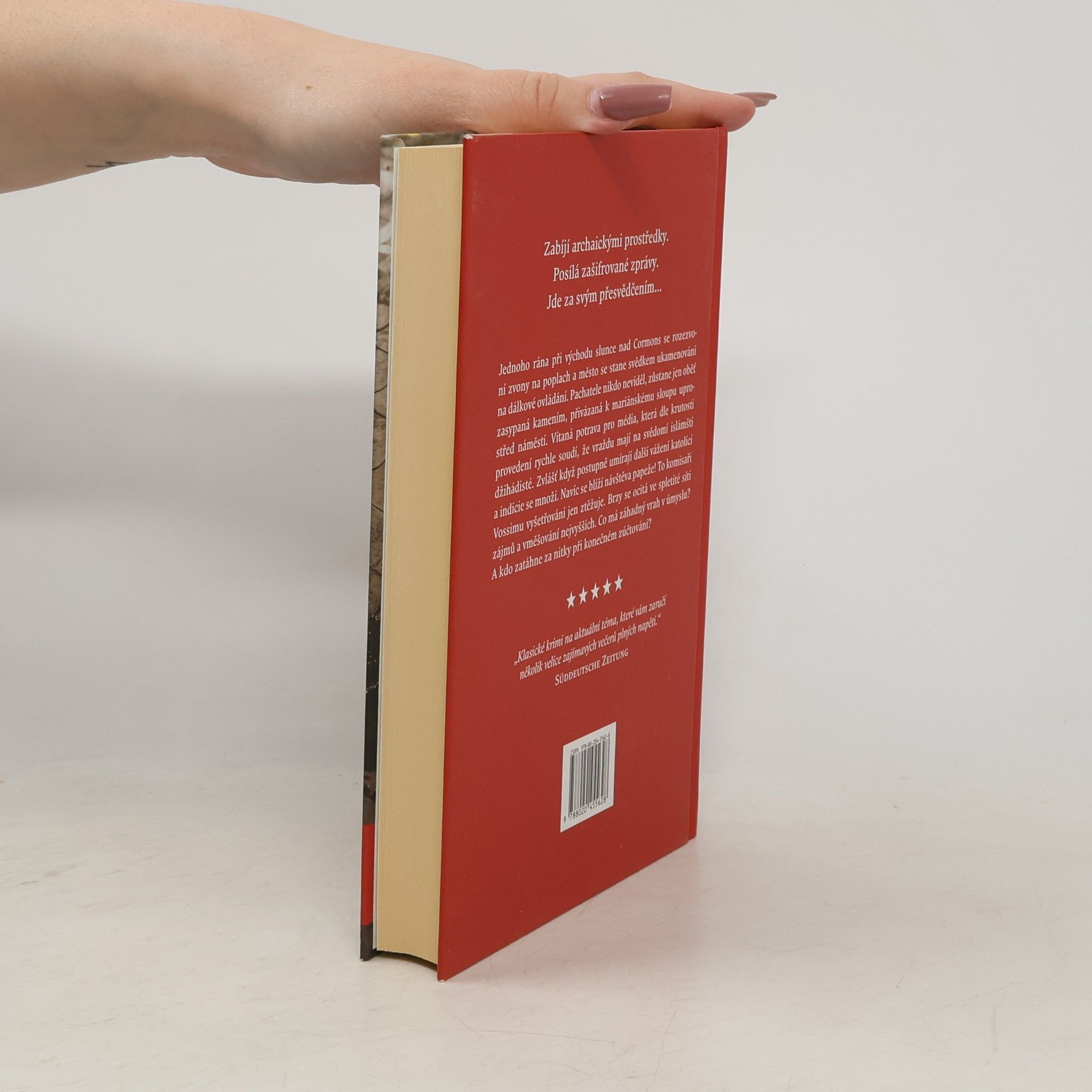 Zabíjí archaickými prostředky. Posílá zašifrované zprávy. Jde za svým přesvědčením. A má cíl… Jednoho rána při východu slunce nad Cormons se rozezvoní zvony na poplach a město se stane svědkem ukamenování na dálkové ovládání. Pachatele nikdo neviděl, zůstane jen oběť zasypaná kamením, přivázaná k mariánskému sloupu uprostřed náměstí. Vítaná potrava pro média, která dle krutosti provedení rychle soudí, že vraždu mají na svědomí islámští džihádisté. Zvlášť když postupně umírají další vážení katolíci a indicie se množí. Navíc se blíží návštěva papeže! To komisaři Vossimu vyšetřování jen ztěžuje. Brzy se ocitá ve spletité síti zájmů a vměšování nejvyšších. Co má záhadný vrah v úmyslu? A kdo zatáhne za nitky při konečném zúčtování?