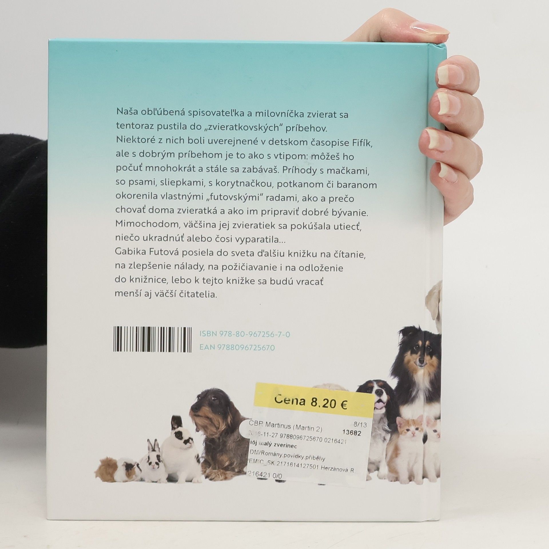 Naša obľúbená spisovateľka a milovníčka zvierat sa tentoraz pustila do "zvieratkovských" príbehov. Príhody s mačkami, so psami, sliepkami, s korytnačkou, potkanom či baranom okorenila vlastnými "futovskými" radami, ako a prečo chovať doma zvieratká a ako im pripraviť dobré bývanie. Mimochodom, väčšina jej zvieratiek sa pokúšala utiecť, niečo ukradnúť alebo čosi vyparatila... Gabika Futová posiela do sveta ďalšiu knižku na čítanie, na zlepšenie nálady, na požičiavanie i na odloženie do knižnice, lebo k tejto knižke sa budú vracať menší aj väčší čitatelia.