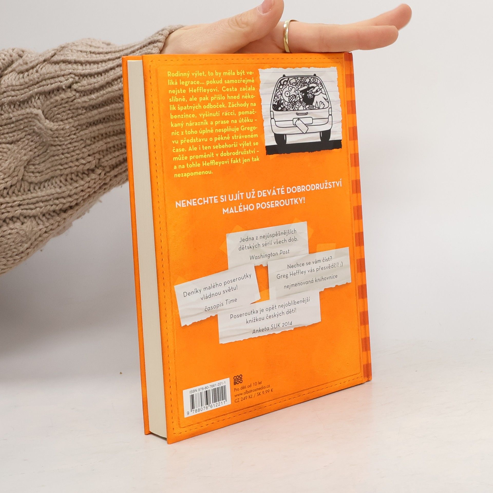 Malý poseroutka už podeváté! Co takhle rodinný výlet plný překvapení? Rodinný výlet, to by měla být veliká legrace… pokud samozřejmě nejste Heffleyovi. Cesta začala slibně, ale pak přišlo hned několik špatných odboček. Záchody na benzínce, vyšinutí racci, pomačkaný nárazník a prase na útěku – nic z toho úplně nesplňuje Gregovu představu o pěkně stráveném čase. Ale i ten sebehorší výlet se může proměnit v dobrodružství – a na tohle Heffleyovi fakt jen tak nezapomenou. Nenechte si ujít už deváté dobrodružství malého poseroutky!