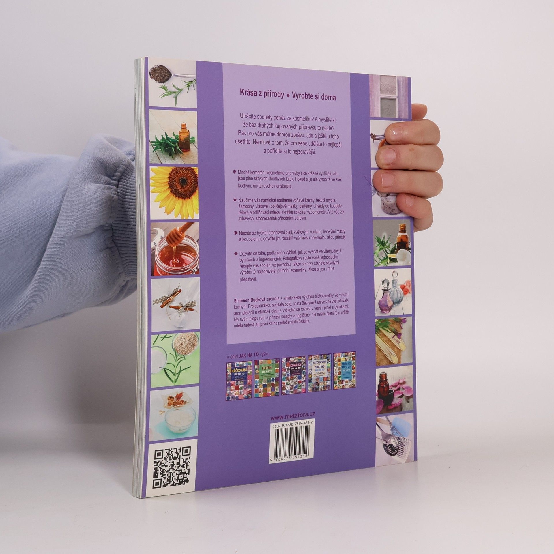 Více jak 200 rad, postupů a návodů k výrobě přírodních kosmetických produktů... Krása z přírody, vyrobte si doma Utrácíte spousty peněz za kosmetiku? A myslíte si, že bez drahých kupovaných přípravků to nejde? Pak pro vás máme dobrou zprávu. Jde, a ještě u toho ušetříte. Nemluvě o tom, že pro sebe uděláte to nejlepší a pořídíte si to nejzdravější. Naučíme vás míchat nádherně voňavé krémy, tekutá mýdla, šampony, vlasové i obličejové masky, parfémy, přísady do koupele, tělová a odličovací mléka, zkrátka cokoli si vzpomenete. A to vše ze zdravých, stoprocentně přírodních surovin. Dozvíte se také, podle čeho vybírat, jak se vyznat ve všemožných bylinkách a ingrediencích. Fotograficky ilustrované jednoduché recepty vás spolehlivě povedou, takže se brzy stanete skvělými výrobci té nejzdravější přírodní kosmetiky, jakou si jen umíte představit.