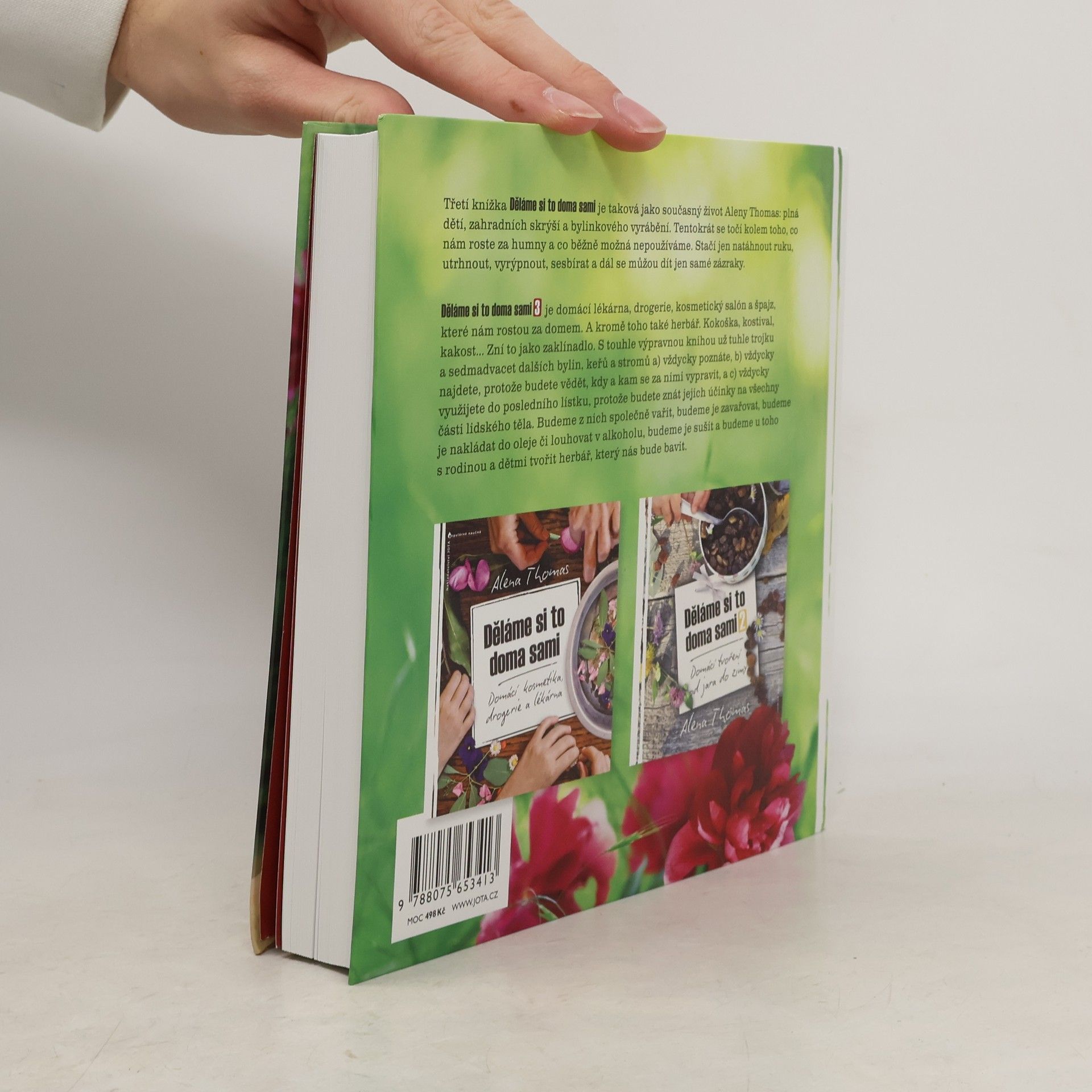 Rosteme, zrajeme, rozrůstáme se. Třetí knížka Děláme si to doma sami je taková jako naše současné životy, plná dětí, zahradních skrýší a bylinkového vyrábění. Tentokrát se točí kolem toho, co nám roste kolem našich domů a co běžně třeba nepoužíváme. Když člověk ví, stačí pak natáhnout ruku, utrhnout, vyrýpnout, sesbírat a dál se můžou dít jen samé zázraky. Děláme si to doma sami 3 je domácí lékárna, drogerie, kosmetický salón a špajz, co nám roste za domem. A kromě toho také herbář. Kozlík, kostival, kakost… Zní to jako zaklínadlo. S touhle výpravnou knihou už tuhle trojku a čtyřicítku dalších bylin, keřů a stromů a) vždycky poznáte, b) vždycky najdete, protože budete vědět, kdy a kam se za nimi vypravit a c) vždycky využijete do posledního lístku, protože budete vědět, jaké mají účinky a na jakou část lidského těla jejich sílu zacílit. Budeme z nich vařit, budeme je zavařovat, budeme je nakládat do oleje či louhovat v alkoholu, budeme je sušit a budeme u toho s rodinou a dětmi tvořit herbář, který nás bude bavit.