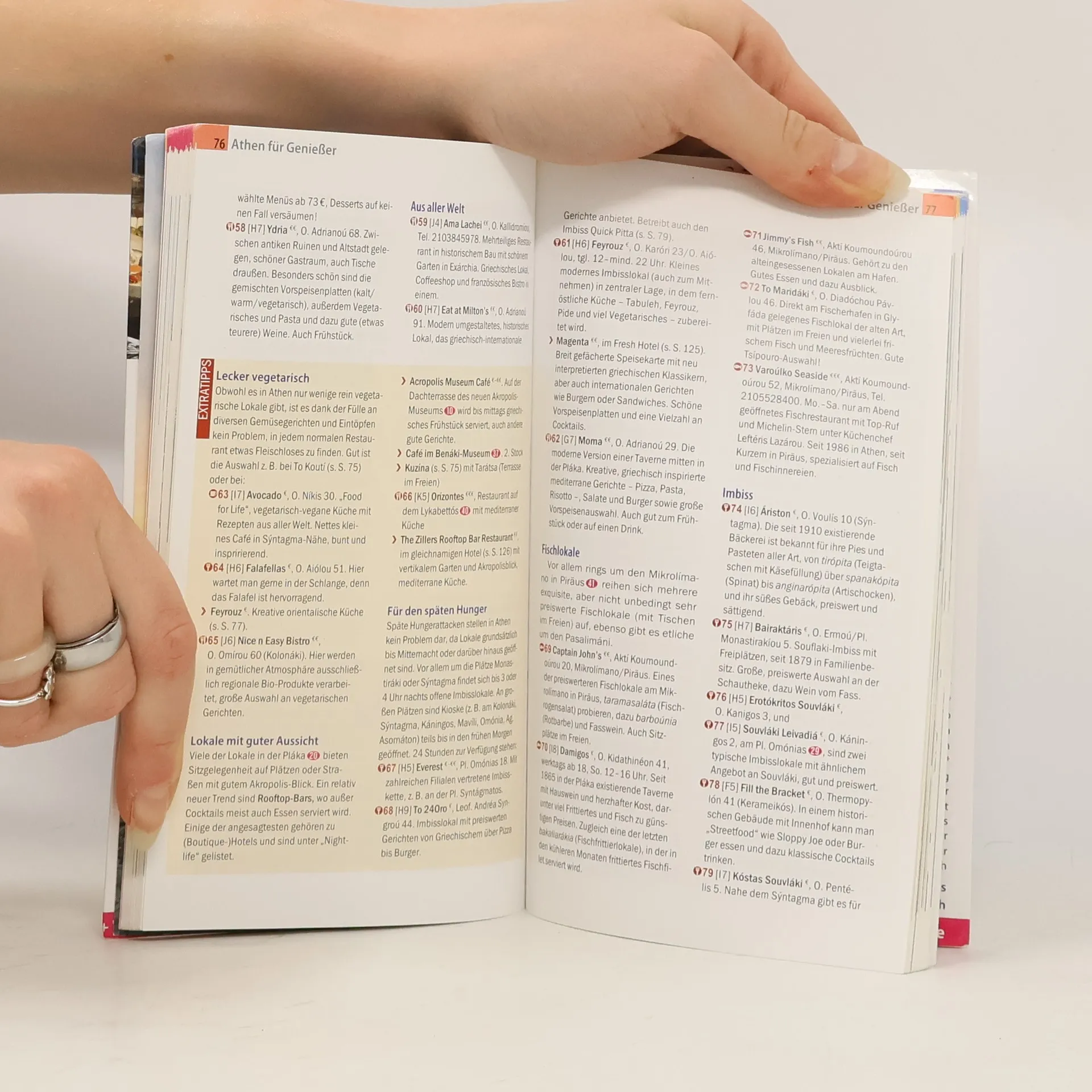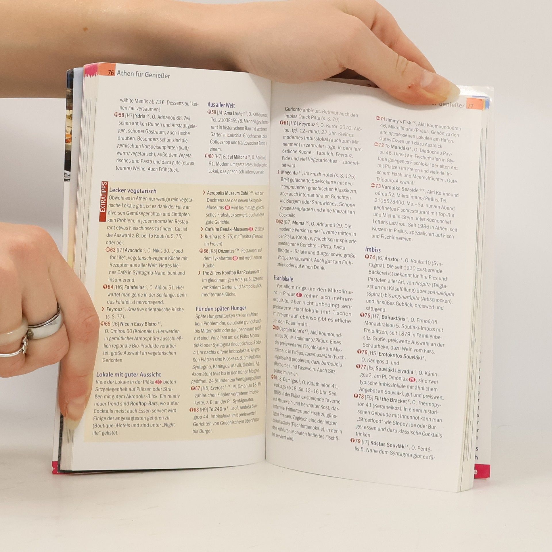 Dieser Stadtführer ist der ideale Begleiter, um die griechische Hauptstadt eigenständig zu erkunden. Er bietet detaillierte Informationen zu den wichtigsten Sehenswürdigkeiten, Museen sowie zu weniger bekannten Attraktionen und Stadtvierteln. Die Leser erhalten faszinierende Einblicke in die Stadt zwischen Antike und Moderne und können abwechslungsreiche Stadtspaziergänge um die Akropolis und durch die Neustadt unternehmen. Vorschläge für Kurztrips und Ausflüge mit der Elektrikós nach Piräus oder mit der Tram ans Meer sind ebenfalls enthalten. Shoppingtipps im „Emborikó Trígono“ und in trendigen Vierteln, von alten Märkten bis zu ausgefallenen Läden, runden das Angebot ab. Empfehlenswerte Lokale und Informationen zur griechischen Küche sowie Tipps für abendliche Unternehmungen in hippen Stadtvierteln wie Gázi und Psirrí werden bereitgestellt. Zudem gibt es Hinweise zu lokalen Getränken wie Retsína und Ouzo. Für Erholung sorgen grüne Oasen zwischen Nationalgarten und antiken Ruinen. Die Unterkunftsempfehlungen reichen von schlicht-preiswert bis ausgefallen. Praktische Infos zu Anreise, Preisen und Stadtverkehr sowie Hintergrundartikel zur Geschichte und Kultur der Stadt sind ebenfalls enthalten. Eine kleine Sprachhilfe mit wichtigen Vokabeln und eine kostenlose Web-App mit Stadtplänen und Routenführung ergänzen den Guide.