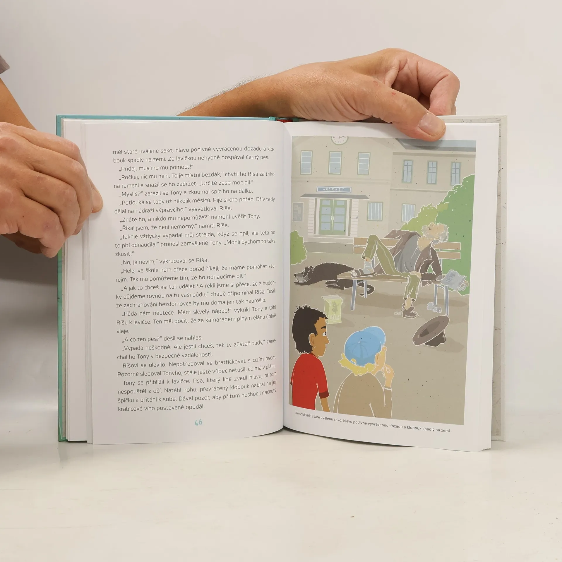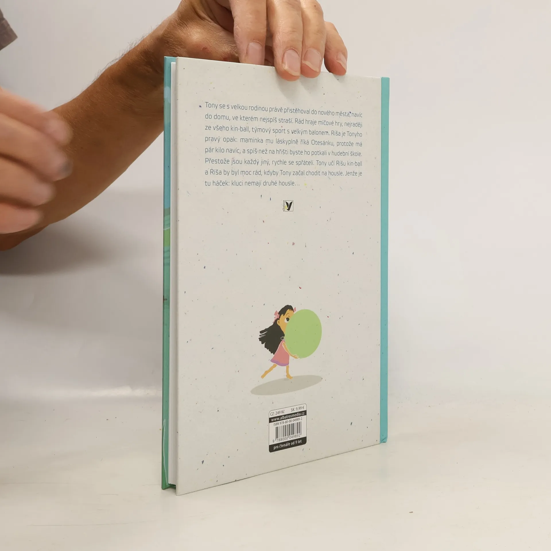 Tony se s velkou rodinou právě přistěhoval do nového města, navíc do domu, ve kterém nejspíš straší. Rád hraje míčové hry, nejraději ze všeho kin ball, týmový sport s velkým balonem. Ríša je Tonyho pravý opak: maminka mu láskyplně říká Otesánku, protože má pár kilo navíc, a spíš než na hřišti byste ho potkali v hudební škole. Přestože jsou každý jiný, rychle se spřátelí. Tony učí Ríšu kin ball a Ríša by byl moc rád, kdyby Tony začal chodit na housle. Jenže je tu háček: kluci nemají druhé housle. Rukopis knihy zvítězil v literární soutěži Albatrosu pro rok 2017 na téma Potkali se ve škole.
