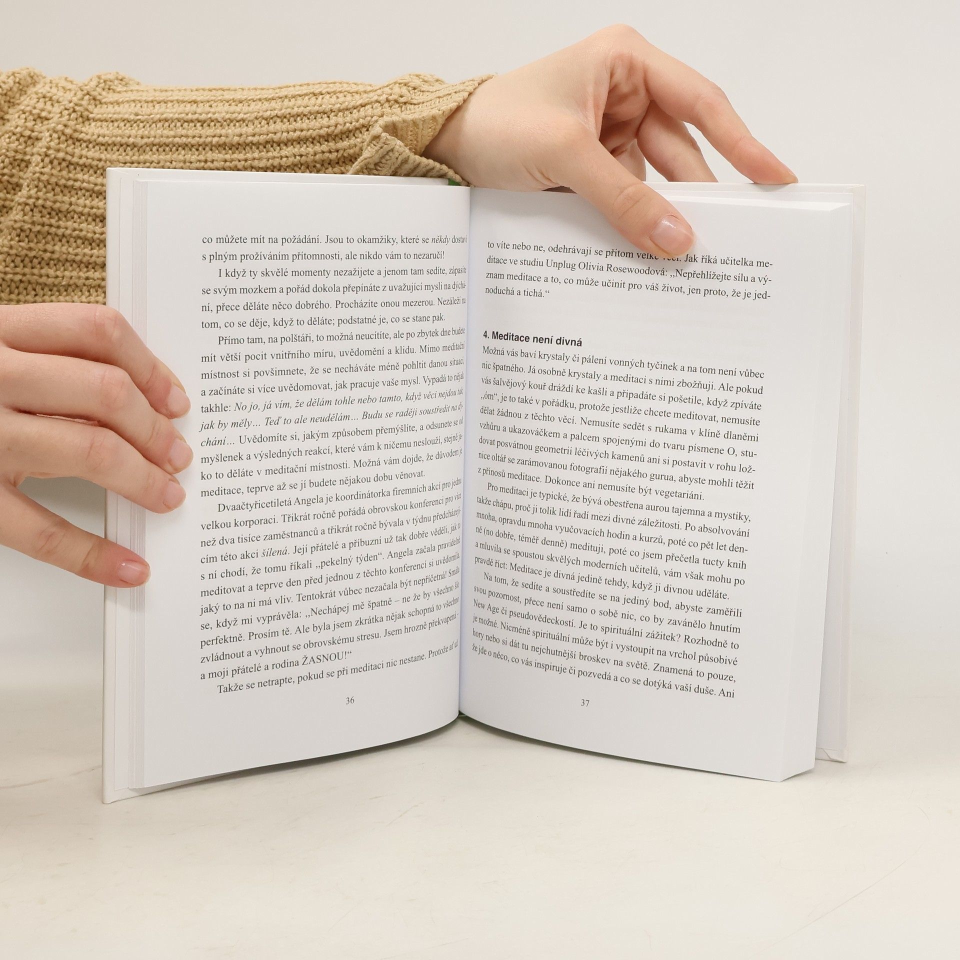 Jednoduchý průvodce meditací pro přepracované skeptiky a moderní ezoteriky Lepší knihu o meditaci si snad ani nelze představit. Autorka přináší přesvědčivý, motivující, srozumitelný a jednoduchý návod, stručně doložený lékařskými výzkumy a velmi věrohodný. V jednoznačném souladu se současným trendem se člověk díky meditaci uklidní, získá lepší soustředění i paměť, a dokonce bude krásnější a víc sexy. Mnohem příjemněji si pak život užívá a je také mnohem výkonnější. Skvěle zpracovaná a zábavně napsaná knížka!