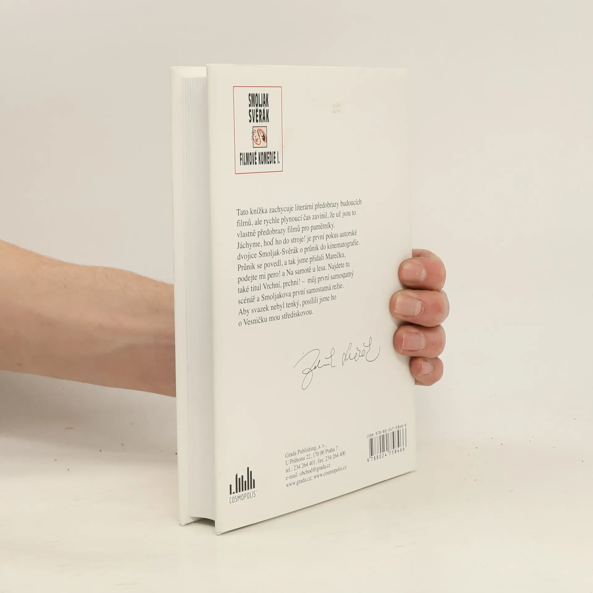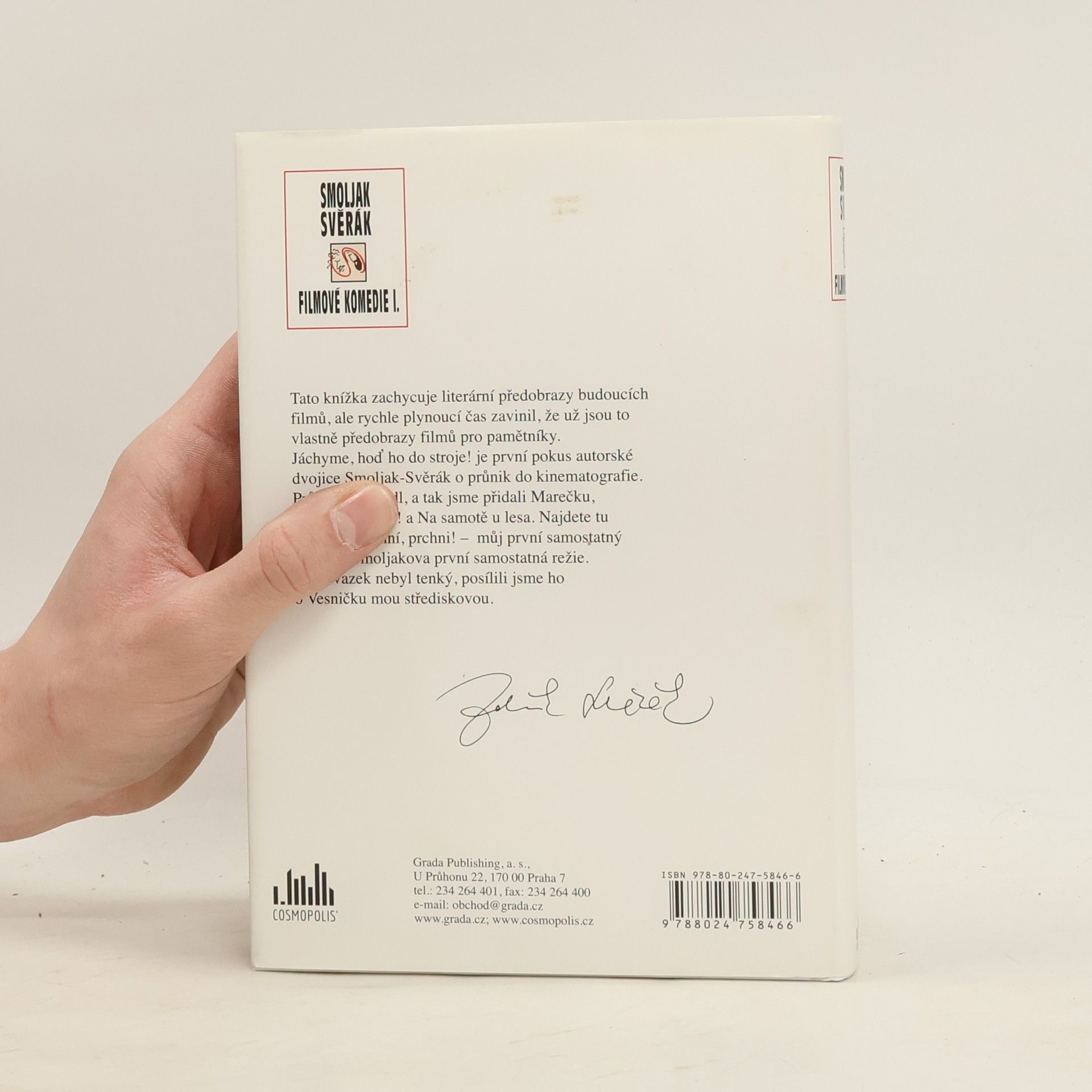 Tato knížka zachycuje literární předobrazy budoucích filmů, ale rychle plynoucí čas zavinil, že už jsou to vlastně předobrazy filmů pro pamětníky. Jáchyme, hoď ho do stroje je první pokus autorské dvojice Smoljak-Svěrák o průnik do kinematografie. Průnik se povedl, a tak jsme přidali Marečku, podejte mi pero a Na samotě u lesa. Najdete tu také titul Vrchní, prchni – můj první samostatný scénář a Smoljakova první samostatná režie. Aby svazek nebyl tenký, posílili jsme ho o Vesničku mou střediskovou. Zdeněk Svěrák