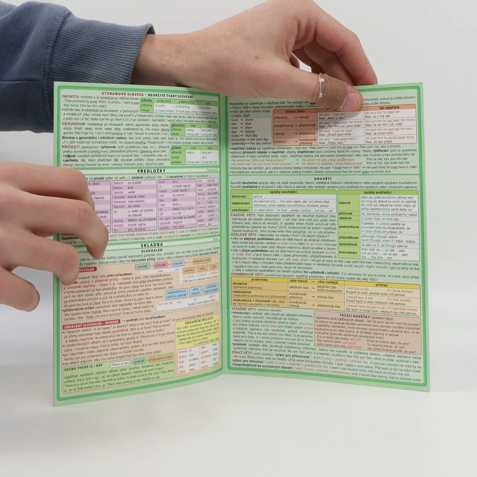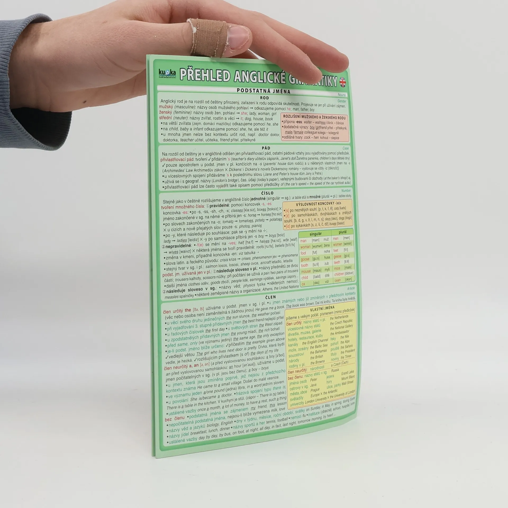 Ucelený přehled anglické gramatiky vhodný pro studenty základních i středních škol. Členění podle slovních druhů. Obsahuje kapitoly přímý a obrácený slovosled, časová souslednost, souvětí. Navíc strana s přehlednou tabulkou tvarů nepravidelných sloves.