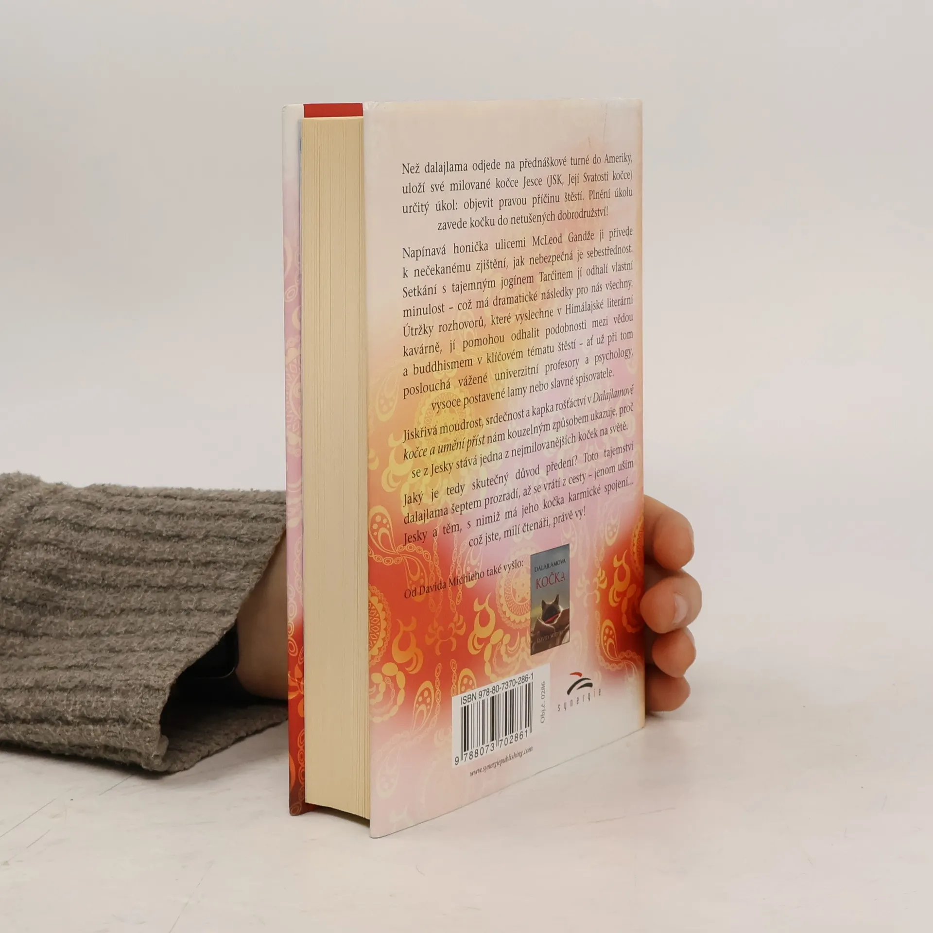 Než dalajlama odjede na přednáškové turné do Ameriky, uloží své milované kočce Jesce (JSK, Její Svatosti Kočce) určitý úkol: objevit pravou příčinu štěstí. Plnění úkolu zavede kočku do netušených dobrodružství! Napínavá honička ulicemi McLeod Gandže ji dovede k nečekanému zjištění o tom, jak je nebezpečná sebestřednost. Setkání s tajemným jogínem Tarčinem jí odhalí vlastní minulost – což má dramatické následky pro nás pro všechny. Útržky rozhovorů, které vyslechne v Himálajské literární kavárně, jí pomůžou odhalit podobnosti mezi vědou a buddhismem v klíčovém tématu štěstí – ať už při tom poslouchá vážené univerzitní profesory a psychology, vysoce postavené lamy nebo slavné spisovatele.Jiskřivá moudrost, srdečnost a kapka rošťáctví v Dalajlamově kočce a umění příst nám kouzelným způsobem ukazuje, proč se z Jesky stává jedna z nejmilovanějších koček na světě. Jaký je tedy skutečný důvod předení? Toto tajemství dalajlama šeptem prozradí, až se vrátí z cesty – jenom uším Jesky a těm, s nimiž má jeho kočka karmické spojení… což jste, milí čtenáři, právě vy! Tato knížka je volným pokračováním knížky Dalajlamova kočka.