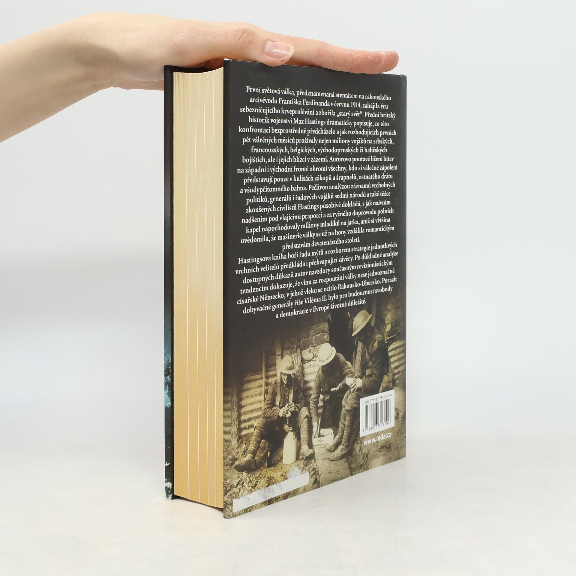 První světová válka, zahájená atentátem na rakouského arcivévodu Františka Ferdinanda v červnu 1914, přinesla éru sebezničujícího krveprolévání a zbořila „starý svět“. Vynikající britský historik vojenství Max Hastings dramaticky popisuje události předcházející této konfrontaci a prožívání prvních pěti měsíců války, které ovlivnily miliony vojáků na různých frontách i jejich blízké. Autorovo poutavé líčení bitev na západní i východní frontě překvapí ty, kteří si válku představují pouze v kulisách zákopů a bahna. Pečlivou analýzou záznamů politiků, generálů a vojáků sedmi národů, stejně jako těžce zkoušených civilistů, Hastings ukazuje, jak naivně mladí muži s nadšením a pod vlajkami vstupovali do války, aniž si uvědomovali, že realita se vzdálila romantickým ideálům devatenáctého století. Kniha boří mýty a přináší překvapující závěry o strategii vrchních velitelů. Autor dokazuje, že vinu za vypuknutí války nese jednoznačně císařské Německo, které vtáhlo Rakousko-Uhersko do konfliktu. Porazit generály říše Viléma II. bylo klíčové pro budoucnost svobody a demokracie v Evropě.