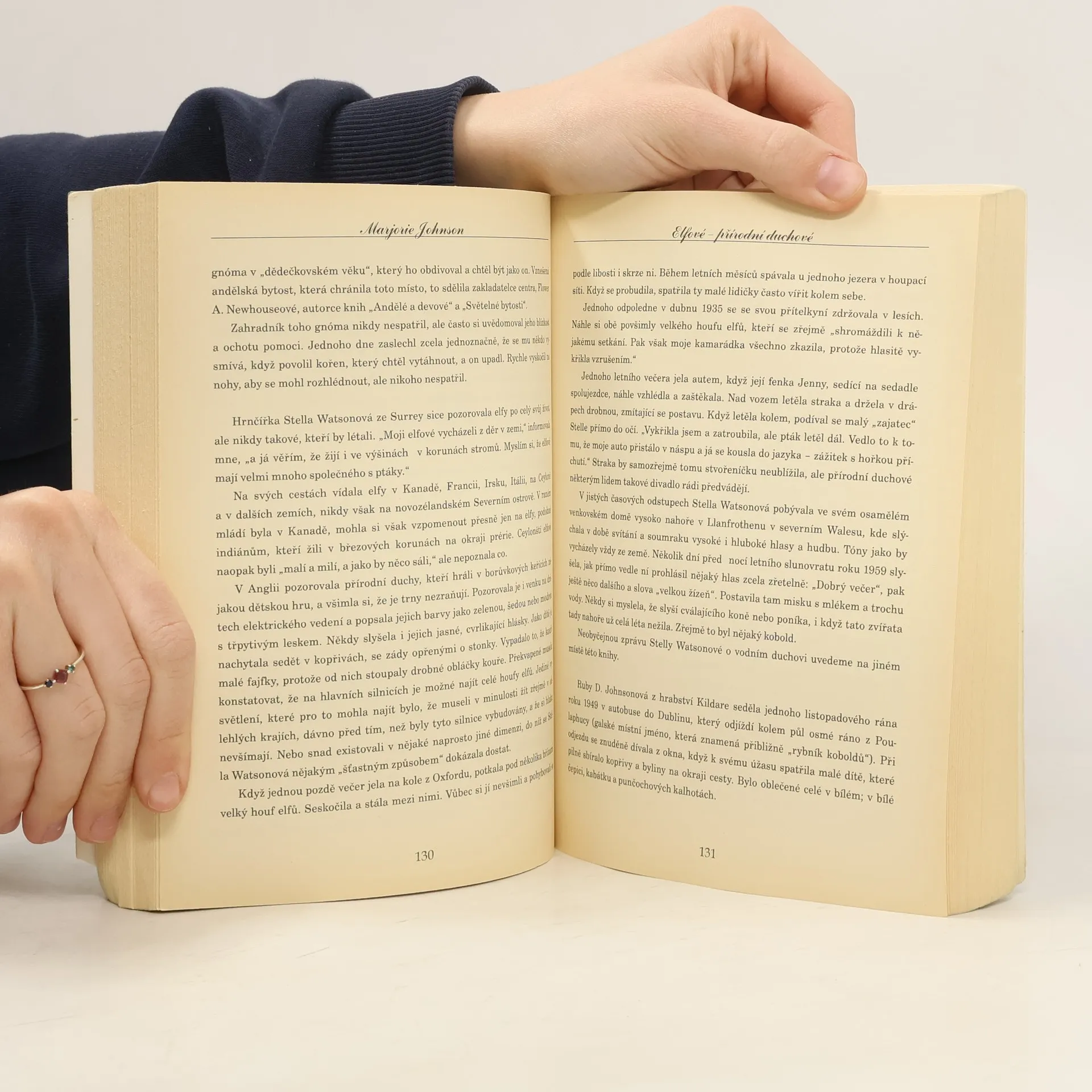 Více než šedesát let svého života věnovala Jako sekretářka Společnosti pro výzkum elfů se Marjorie Johnson intenzivně věnuje studiu přírodních duchů. Něco takového bylo zřejmě možné pouze v zemi, kde vědění o říši přírodních bytostí nikdy nezaniklo v ostrovní Anglii. Tato kniha obsahuje nejúžasnější a nejpodrobněji doložené zprávy mnoha lidí z celého světa o zkušenostech s elfy.
