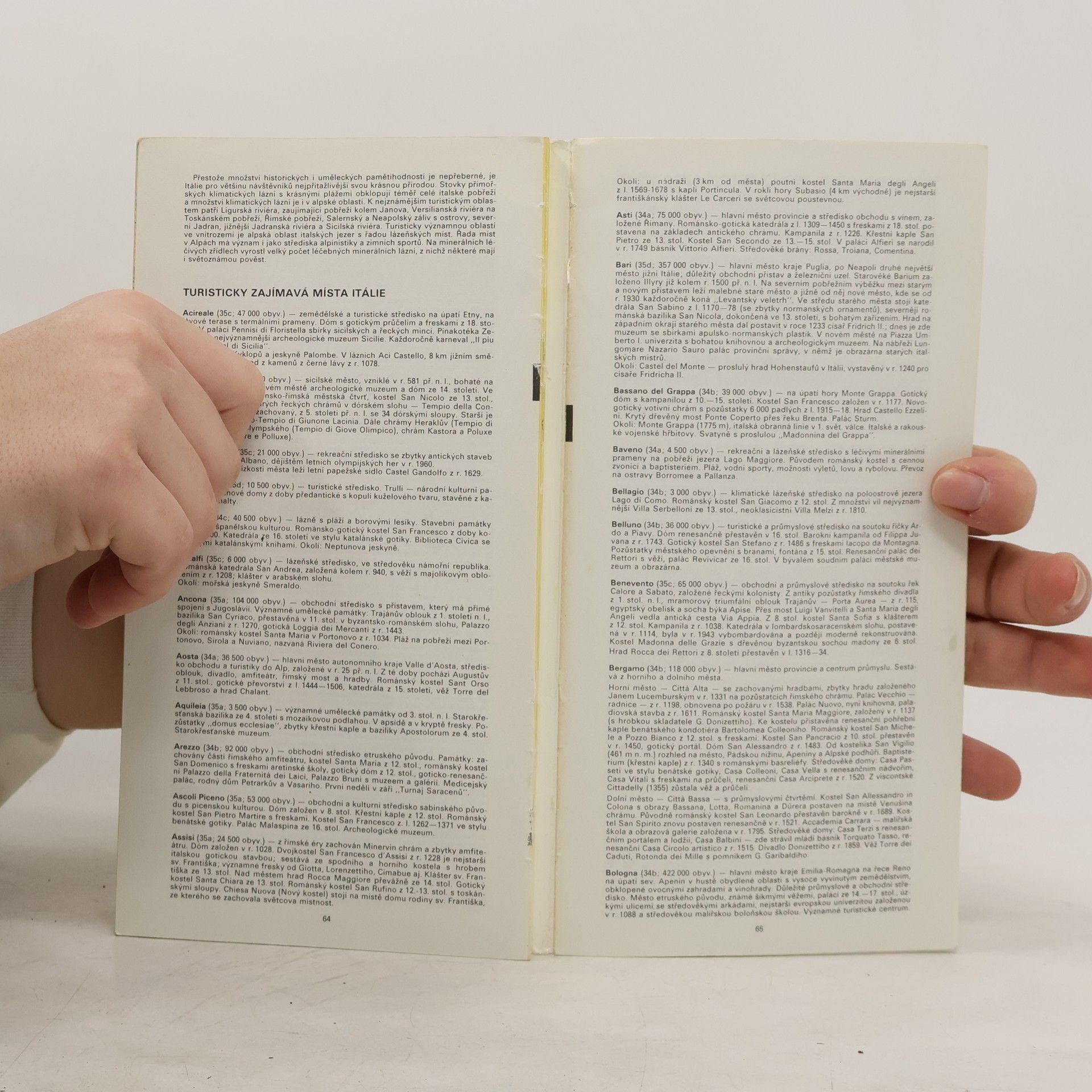 Administrativní a železniční mapa, hlavní příjezdové trasy do Itálie, turisticky zajímavá místa, plány měst, stručný vlastivědný text.