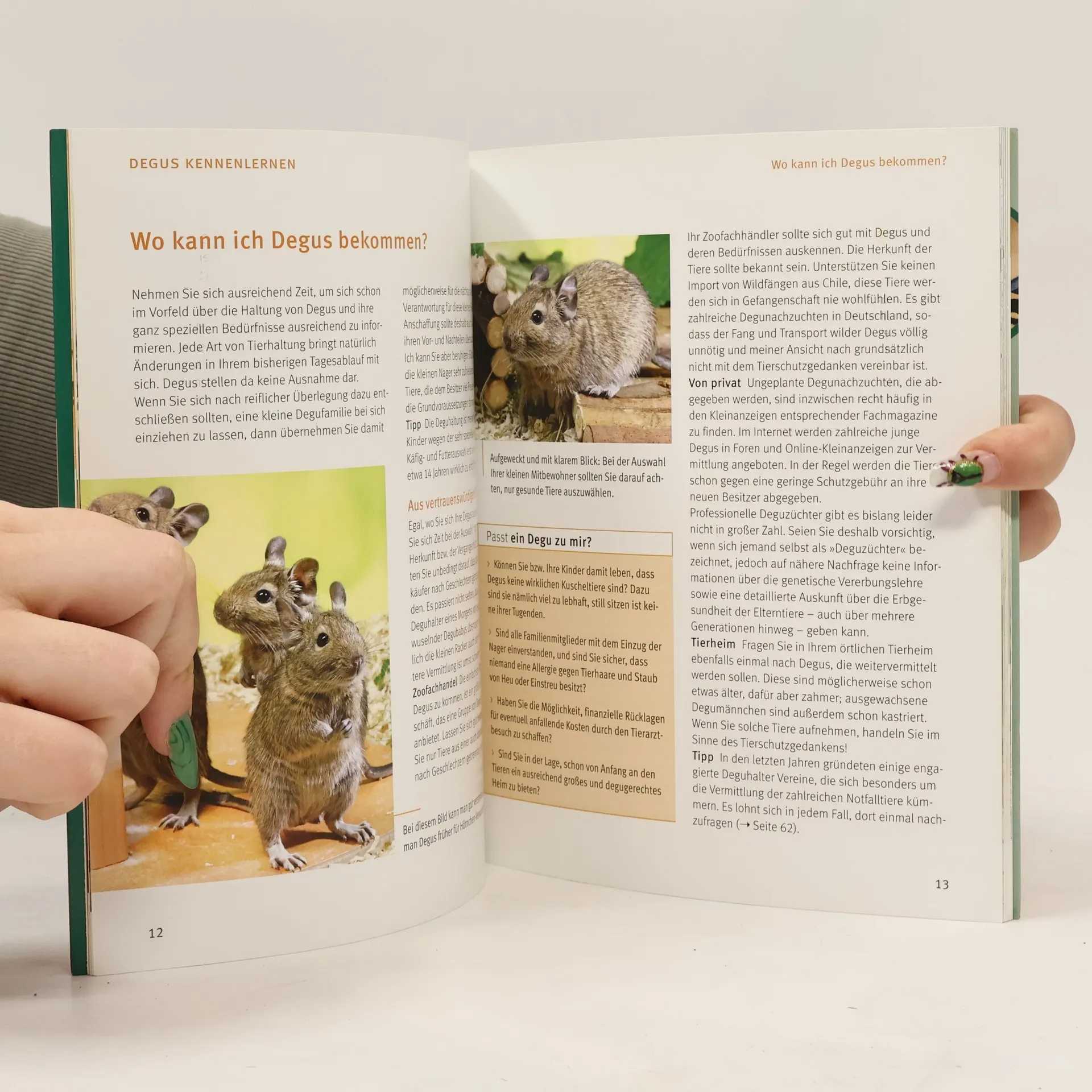Die aufgeweckten Degus erobern die Herzen deutscher Haustierfreunde im Sturm - und Alexandra Beißwenger zeigt Ihnen in diesem Tierratgeber, wie Sie die Degus am besten halten können. Die Tierärztin und Deguliebhaberin der ersten Stunde erklärt, was die pfiffigen Degus aus Chile brauchen, um sich als Heimtiere wohl zu fühlen. Sie erfahren, wie Sie die an karge Kost gewöhnten Tiere durch eine ausgewogene Ernährung lange fit und gesund halten. Ein weiterer wichtiger Schwerpunkt des Buches ist die abwechslungsreiche und artgerechte Käfiggestaltung. Zusätzlich erklärt die Autorin, wie Sie Ihre Degus am besten handzahm machen und ihnen außerdem mit vielen Spiel- und Beschäftigungsideen ein spannendes Leben bieten können.