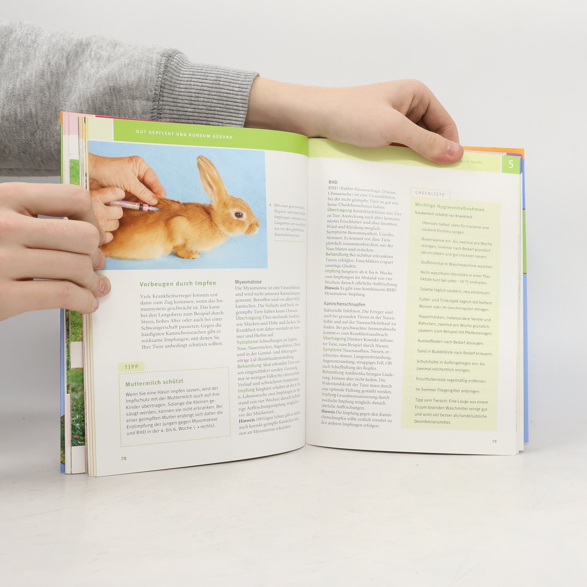 Schlägt auch Ihr Herz für die größeren Langohren? Dann bietet Ihnen dieses Buch alles, was Sie wissen müssen, um die mittelgroßen und großen Kaninchen als Heimtiere artgerecht zu halten. Umfassend werden alle Fragen zu Kauf, Auswahl und Eingewöhnung beantwortet. Zudem werden verschiedenene Möglichkeiten der artgerechten Unterbringung für drinnen und draußen gezeigt und viele Beschäftigungsideen vorgestellt. Sie erfahren alles über die richtige Ernährung von Kaninchen und deren Futterbedarf. Damit es Ihren Kaninchen auch rund um gut geht, informiert Sie die Autorin über die richtige Pflege, vorbeugende Gesundheitsmaßnahmen und Erste Hilfe. Darüber hinaus bekommen Sie alle Informationen zu den Themen Paarung und Nachwuchs. Zusätzlich hilft ein Kapitel die wichtigsten Verhaltens- und Haltungsprobleme mit Kaninchen zu lösen. Mit Aktivtests lernen Sie Ihr Kaninchen besser zu verstehen und Eltern-Extras liefern wichtige Infos für Familien mit Kindern. Plus: Info-Poster zum Heraustrennen.
