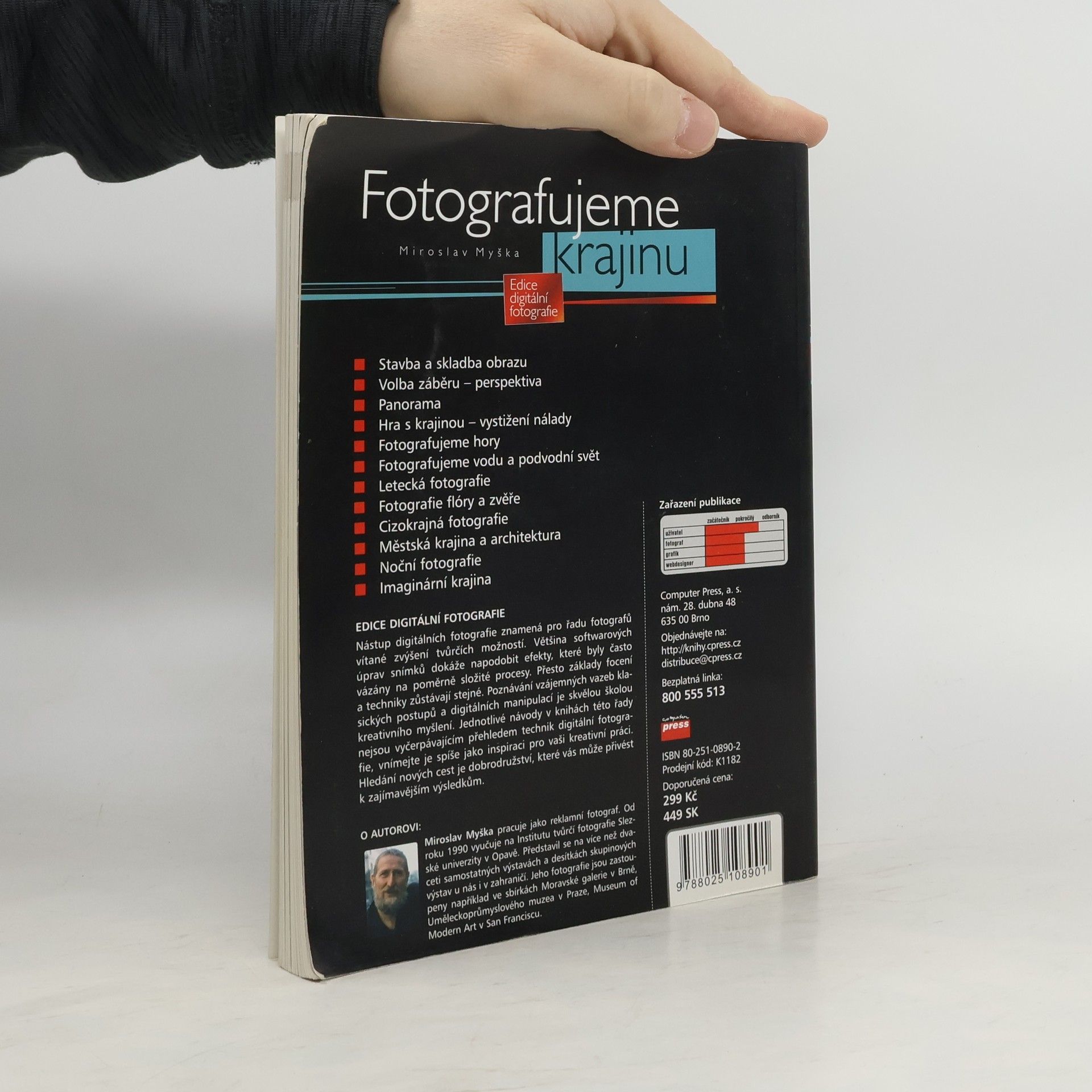 Z obsahu knihy: * Stavba a skladba obrazu * Volba záběru – perspektiva * Panorama * Hra s krajinou – vystižení nálady * Fotografujeme hory * Fotografujeme vodu a podvodní svět * Letecká fotografie * Fotografie flóry a zvěře * Cizokrajná fotografie * Městská krajina a architektura * Noční fotografie * Imaginární krajina