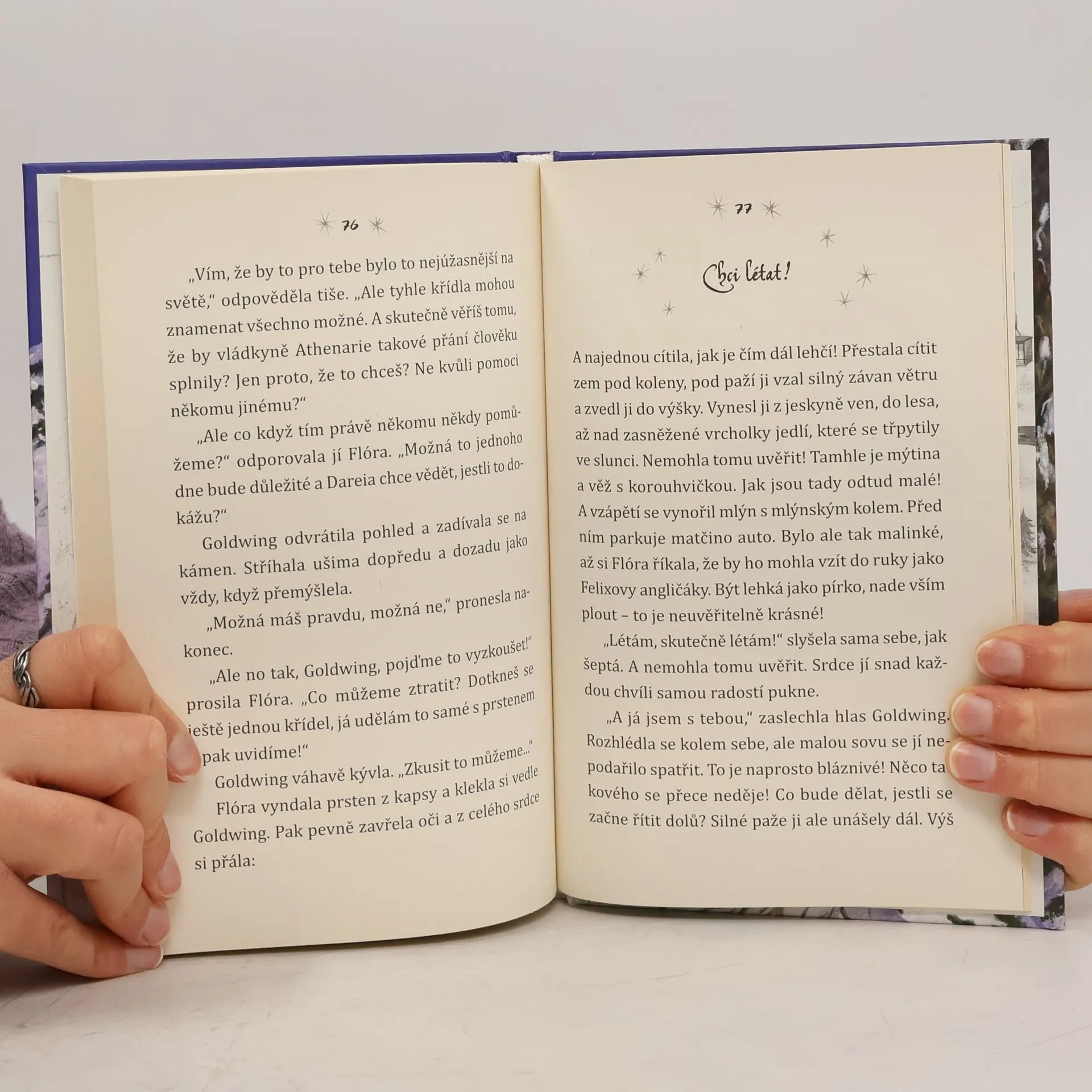 Kéž by se mohla alespoň jednou pořádně proletět! To si Flóra přeje již hodně dlouho. Samozřejmě ale nemá křídla jako její kouzelná sova Goldwing. A přát si něco takového pod stromeček je zbytečné. Pak ale v lese objeví neuvěřitelnou věc: v hluboké krápníkové jeskyni je vytesán symbol sovy! Jakmile se k němu Flóra přiblíží, začne ji svědit celé tělo. Že by se jí přání k Vánocům přece jen vyplnilo?
