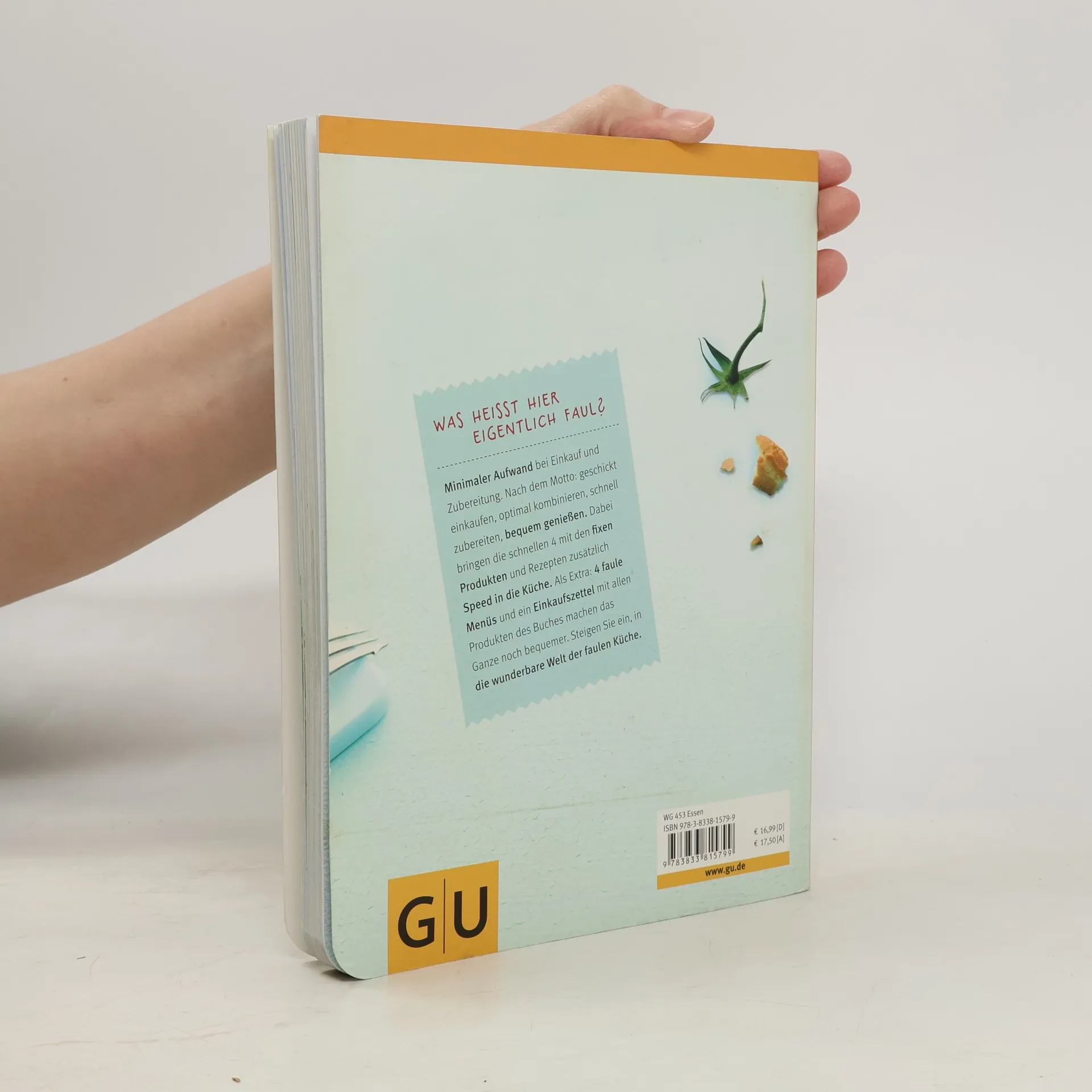 Was heißt hier eigentlich faul? Minimaler Aufwand bei Einkauf und Zubereitung. Wir brauchen für unser Pasta-Rezept eben nicht unbedingt diese spezielle Spaghetti-Sorte, denn jede andere Nudel aus dem Vorratsschrank tut es auch und schmeckt trotzdem super lecker. Nach dem Motto: geschickt einkaufen, optimal kombinieren, schnell zubereiten, bequem genießen. Wir wählen genau die Lebensmittel aus, die das tägliche Küchenleben einfach bequem machen und am wenigsten Arbeit machen. Greifen zur Bio-Minisalatgurke, weil man die ohne schälen also mit Haut und Haaren verputzen kann. Oder zu Kirschtomaten und Frühlingszwiebeln, denn da gibt es kaum etwas zu putzen. Außerdem in allen Kapiteln die schnellen 4er-Seiten mit den schnellsten Produkten und Rezepten - besonders fix, unaufwendig, flexibel und vielfach verwendbar. Als Extra: 4 faule Menüs und ein Einkaufszettel mit allen Produkten des Buches die das Ganze noch bequemer machen. Steigen Sie ein, in die wunderbare Welt der faulen Küche