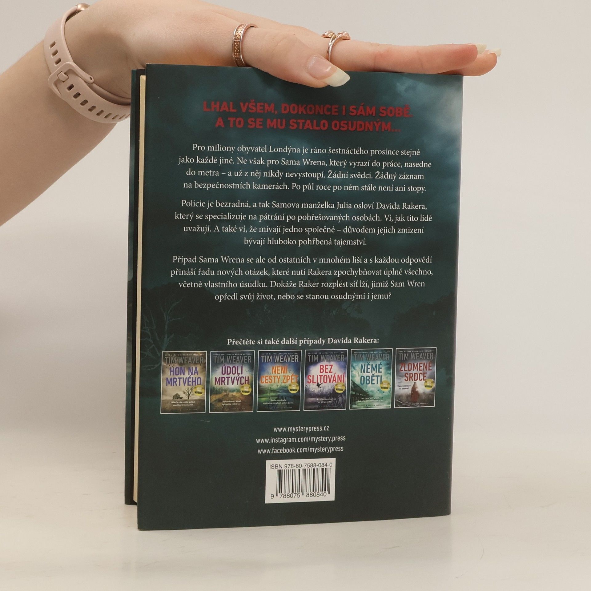 Pro miliony obyvatel Londýna je ráno šestnáctého prosince stejné jako každé jiné. Ne však pro Sama Wrena, který vyrazí do práce, nasedne do metra – a už z něj nikdy nevystoupí. Žádní svědci. Žádný záznam na bezpečnostních kamerách. Po půl roce po něm stále není ani stopy. Policie je bezradná, a tak Samova manželka Julia osloví Davida Rakera, který se specializuje na pátrání po pohřešovaných osobách. Ví, jak tito lidé uvažují. A také ví, že mívají jedno společné – důvodem jejich zmizení bývají hluboko pohřbená tajemství. Případ Sama Wrena se ale od ostatních v mnohém liší a s každou odpovědí přináší řadu nových otázek, které nutí Rakera zpochybňovat úplně všechno, včetně vlastního úsudku. Dokáže Raker rozplést síť lží, jimiž Sam Wren opředl svůj život, nebo se stanou osudnými i jemu?